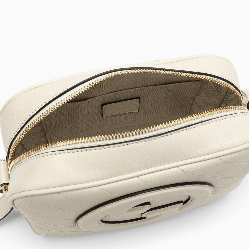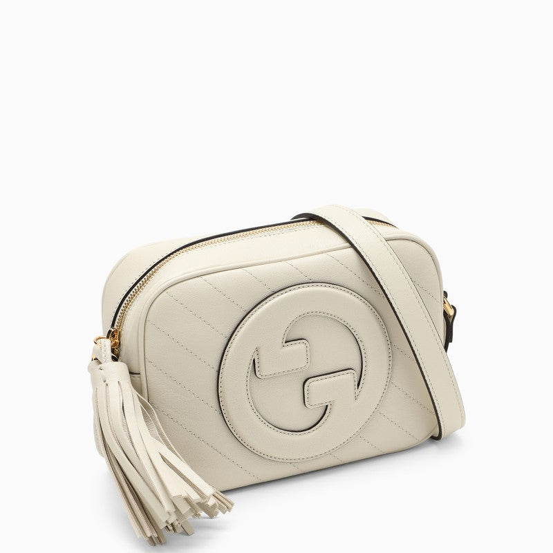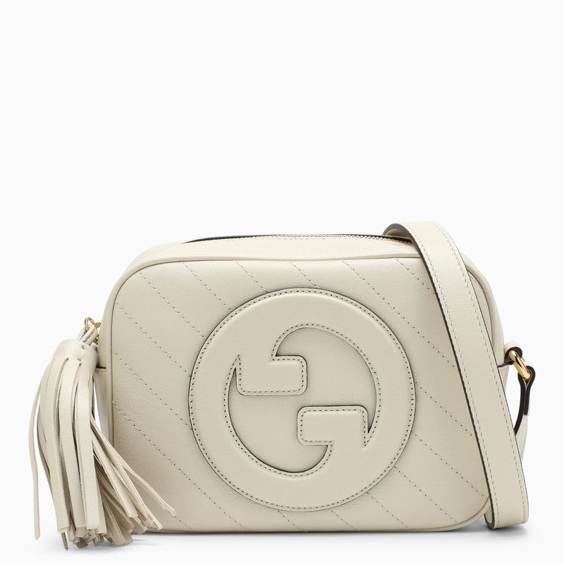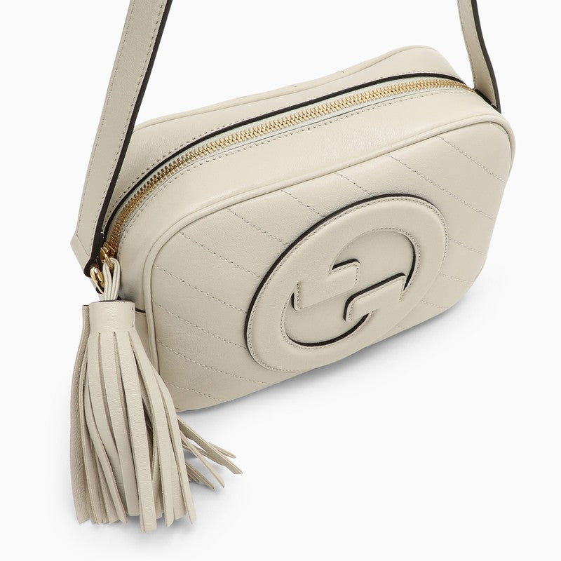 White leather shoulder bag from Gucci featuring a tone-on-tone striped pattern, a stitched GG logo on the front, a top zip fastening, a decorative tassel, an internal flat pocket and gold-tone metal hardware. Width 21 cm x Height 15,5 cm x Depth 5 cm Adjustable shoulder strap length min 102 cm - max 116 cm