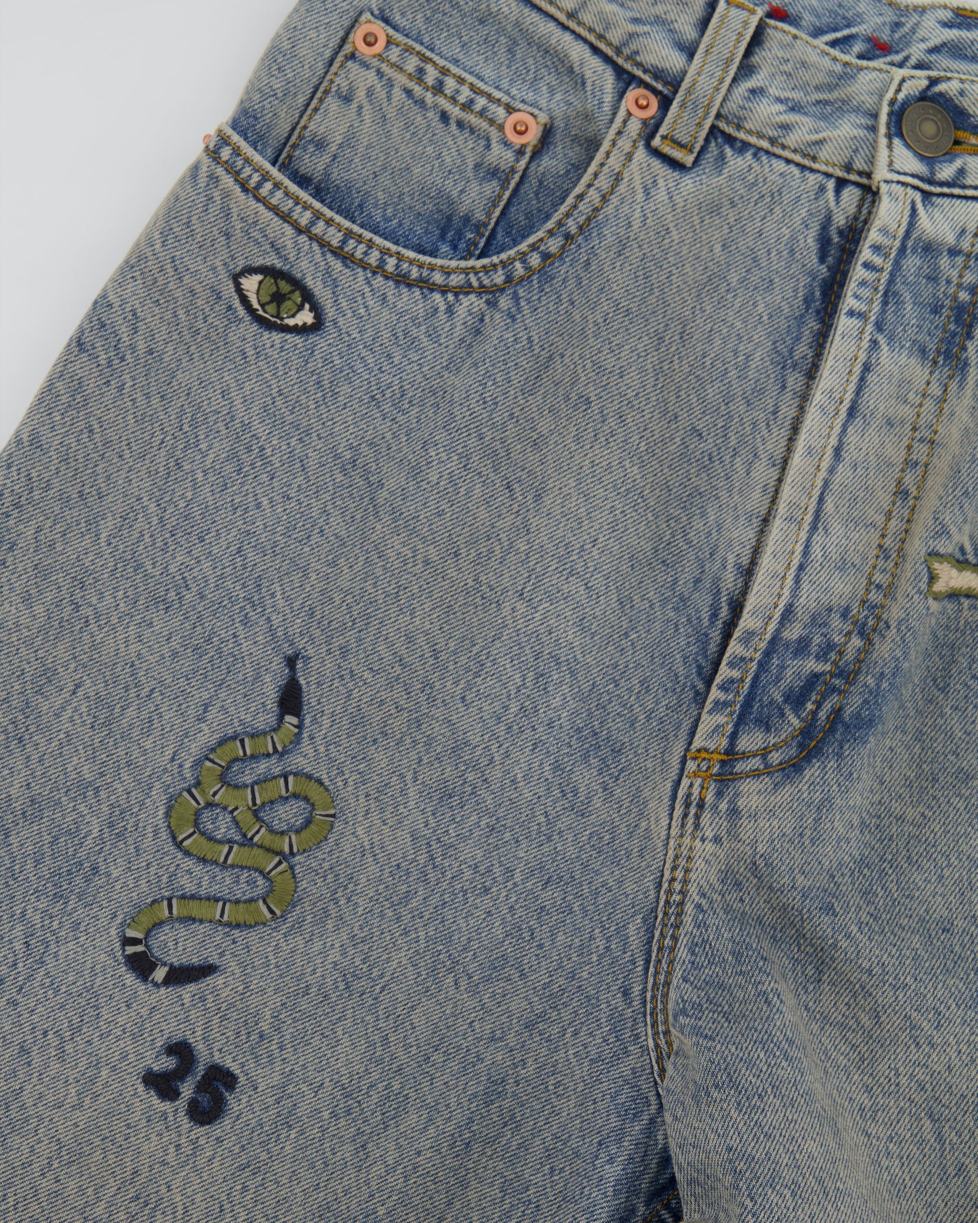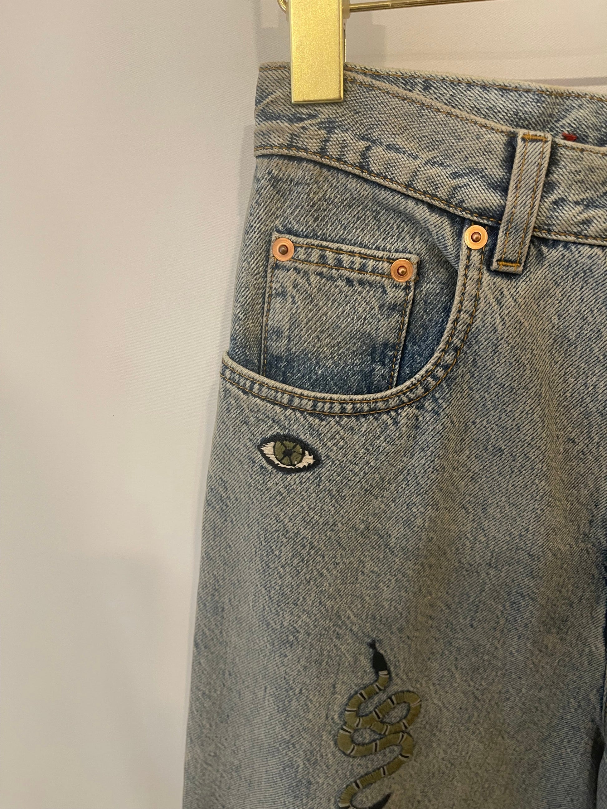 Gucci Blue Straight Loved Jeans with Multicolour Embroideries Size 25 (UK 6)