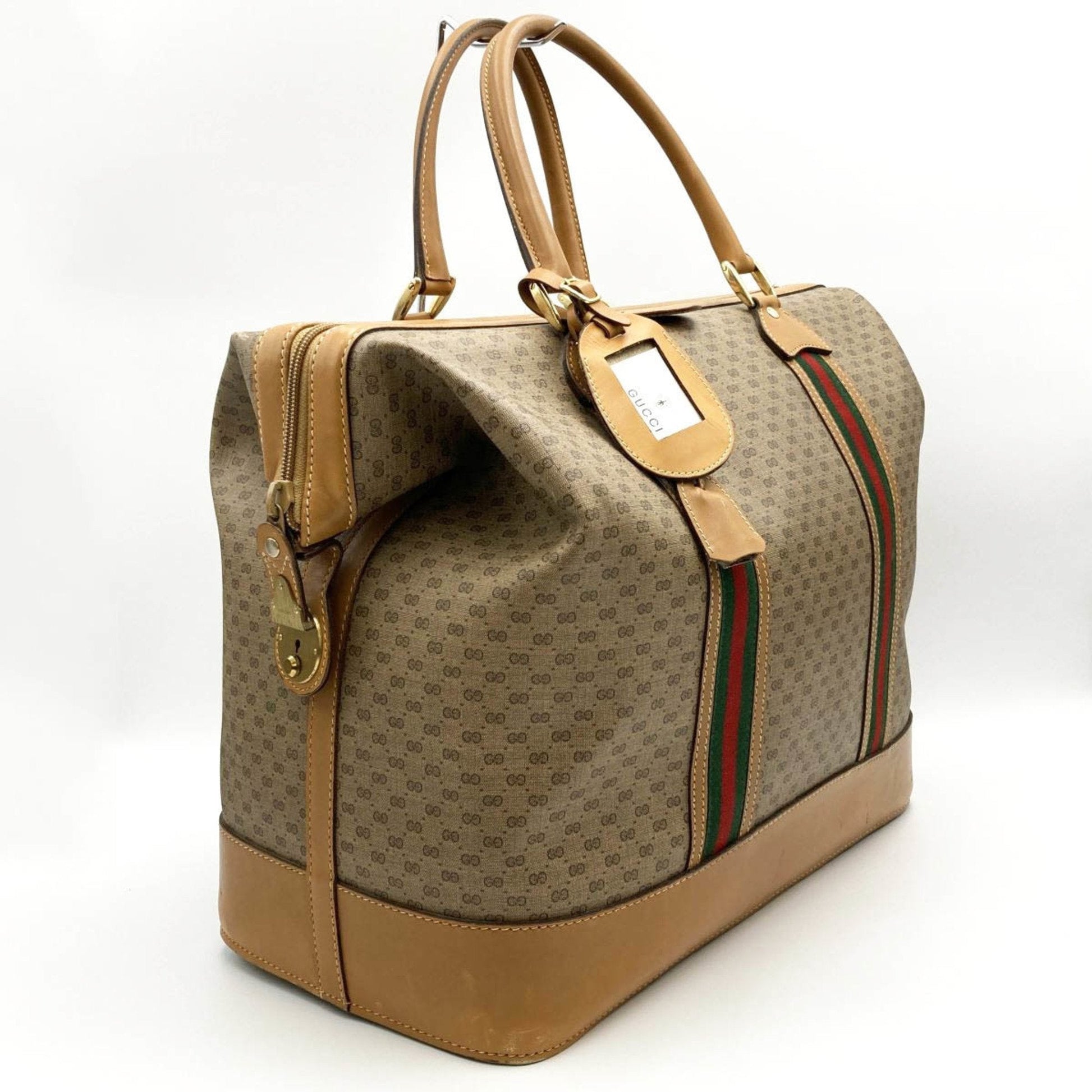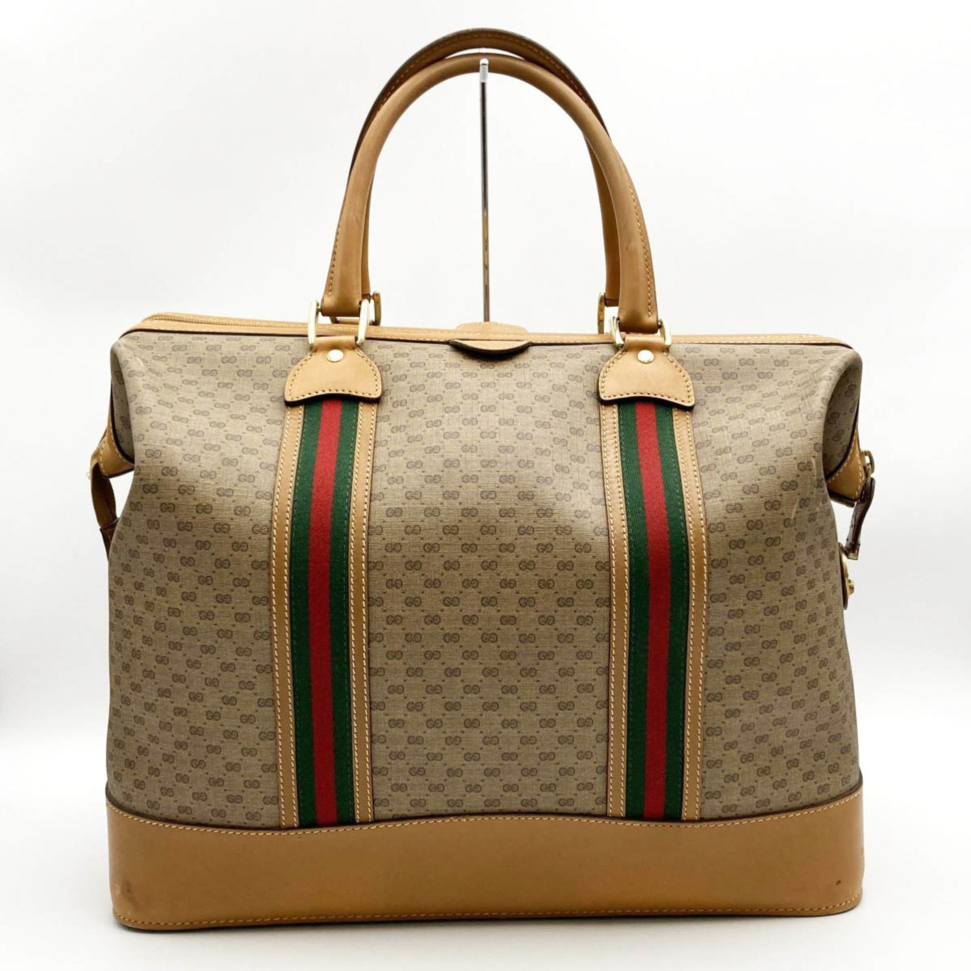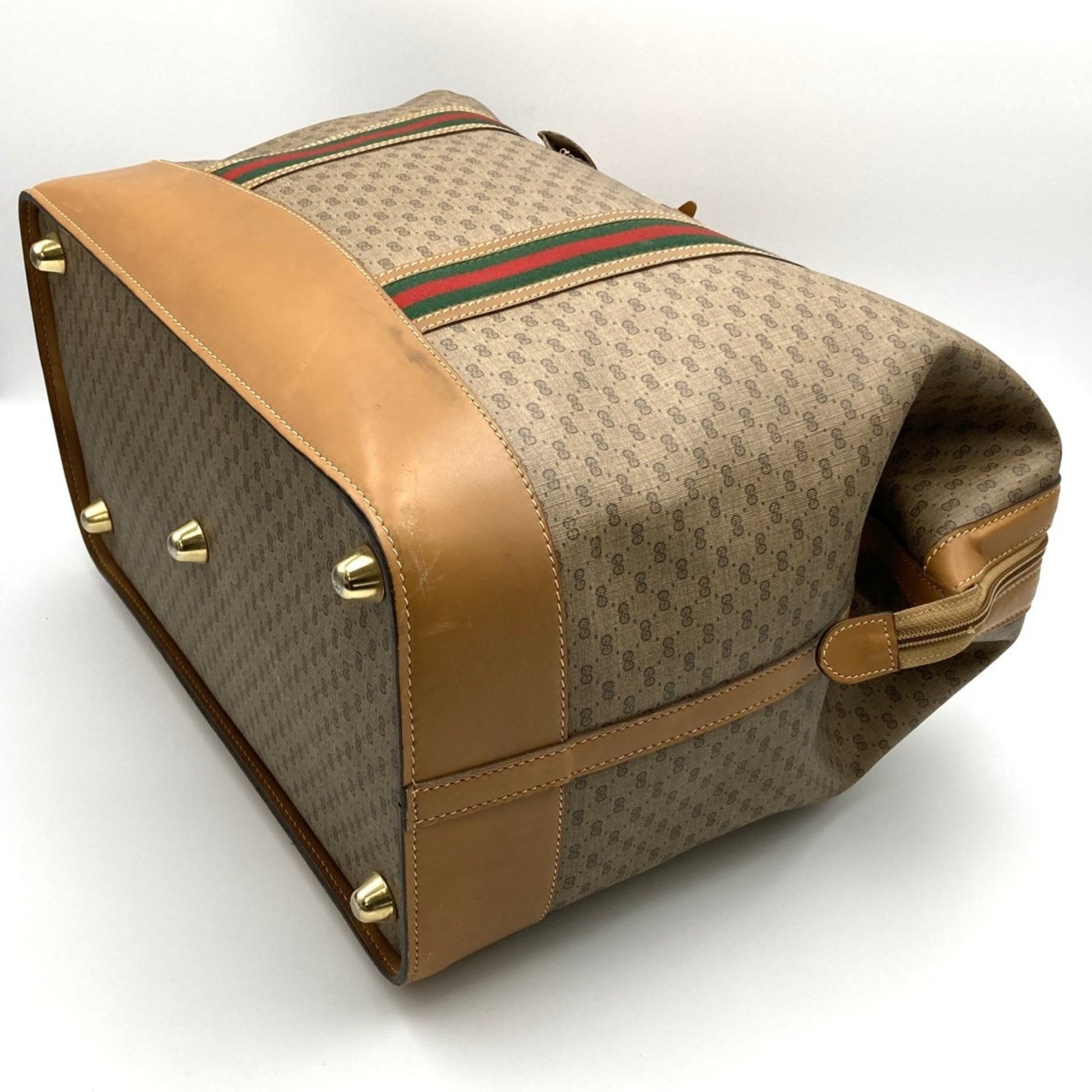 Gucci Boston Bag Travel Micro GG Sherry Line Beige Brown PVC Leather Women's Men's 012 122