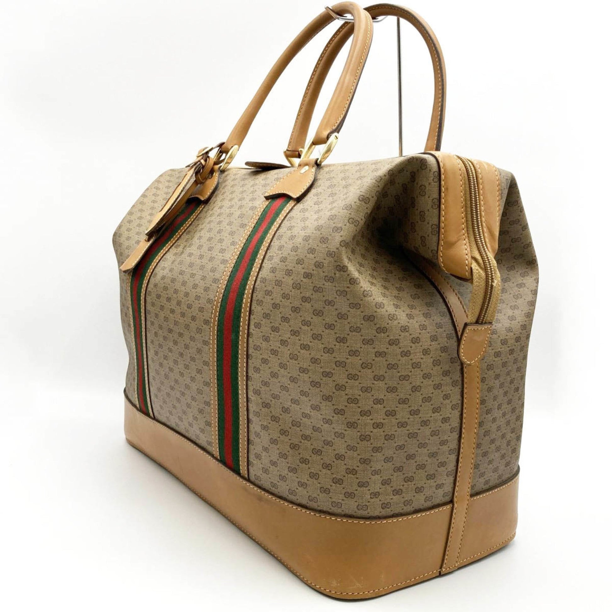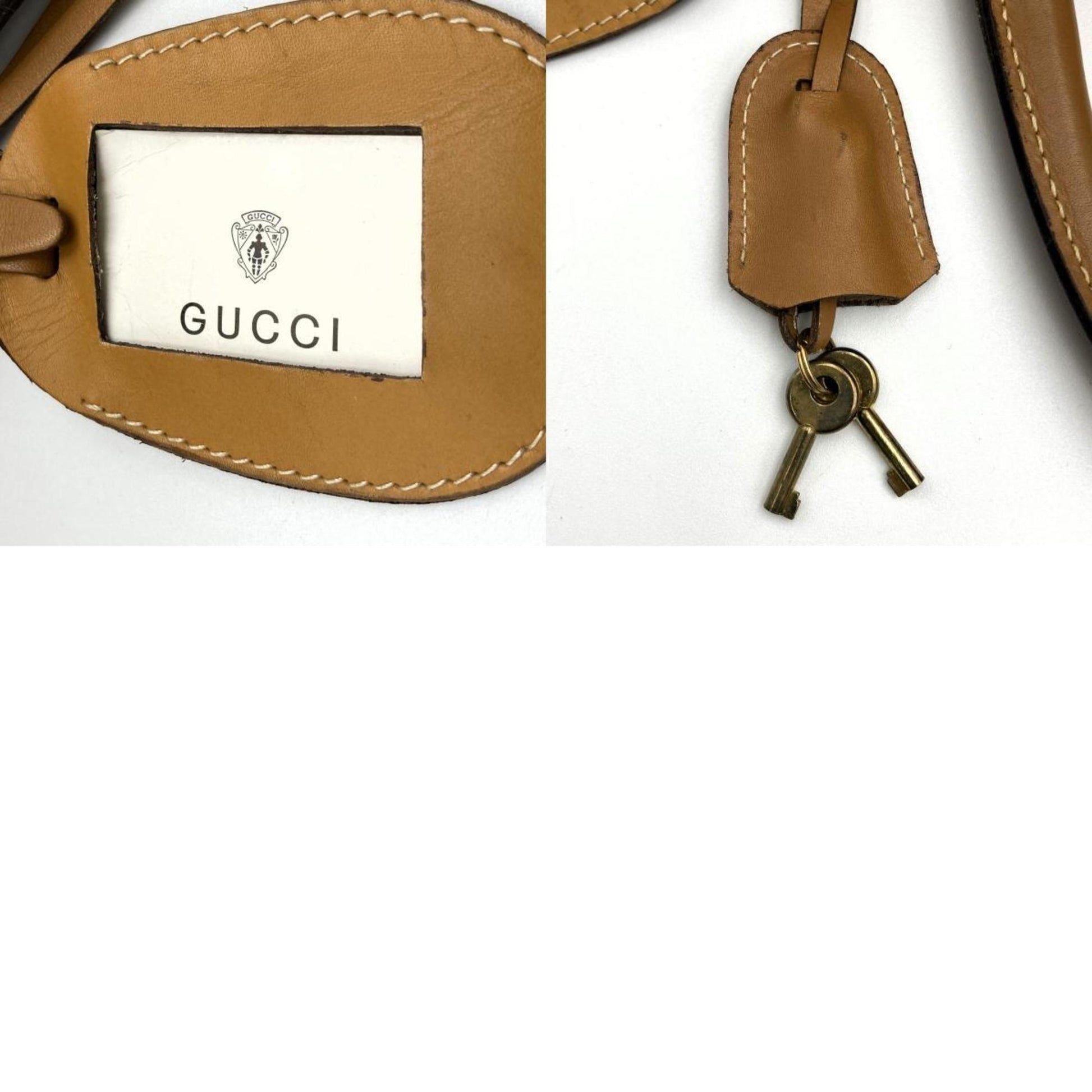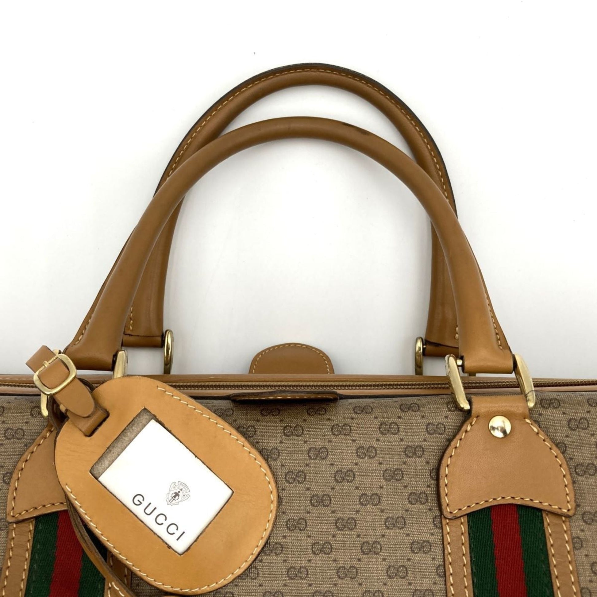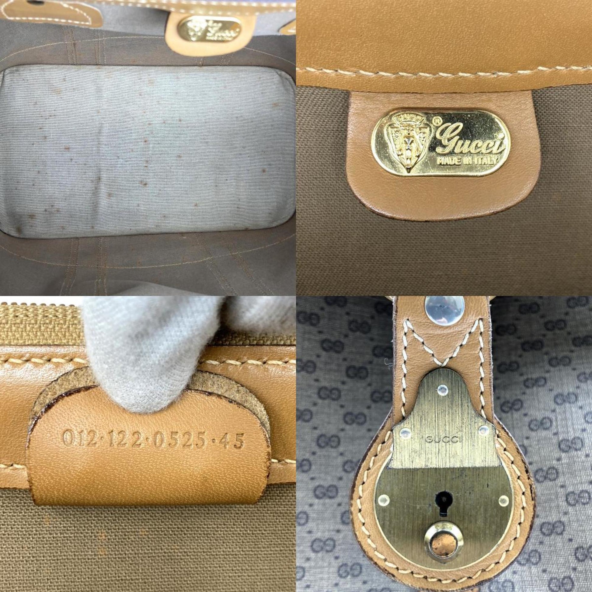 GUCCI Boston Bag Travel Micro GG Sherry Line Beige Brown PVC Leather Women's Men's 012 122