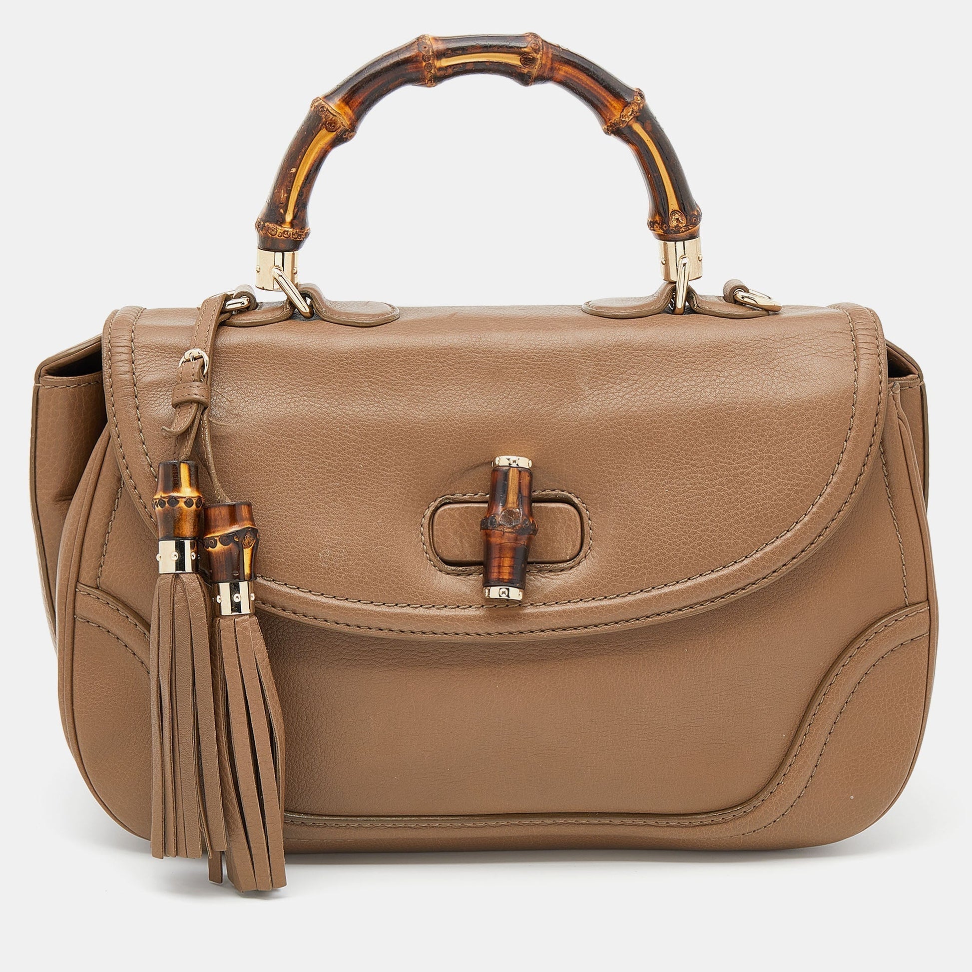 Gucci Brown Leather Large New Bamboo Tassel Top Handle bag