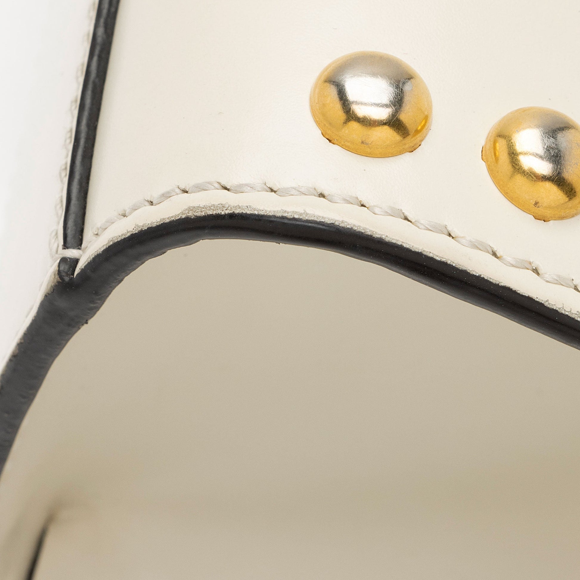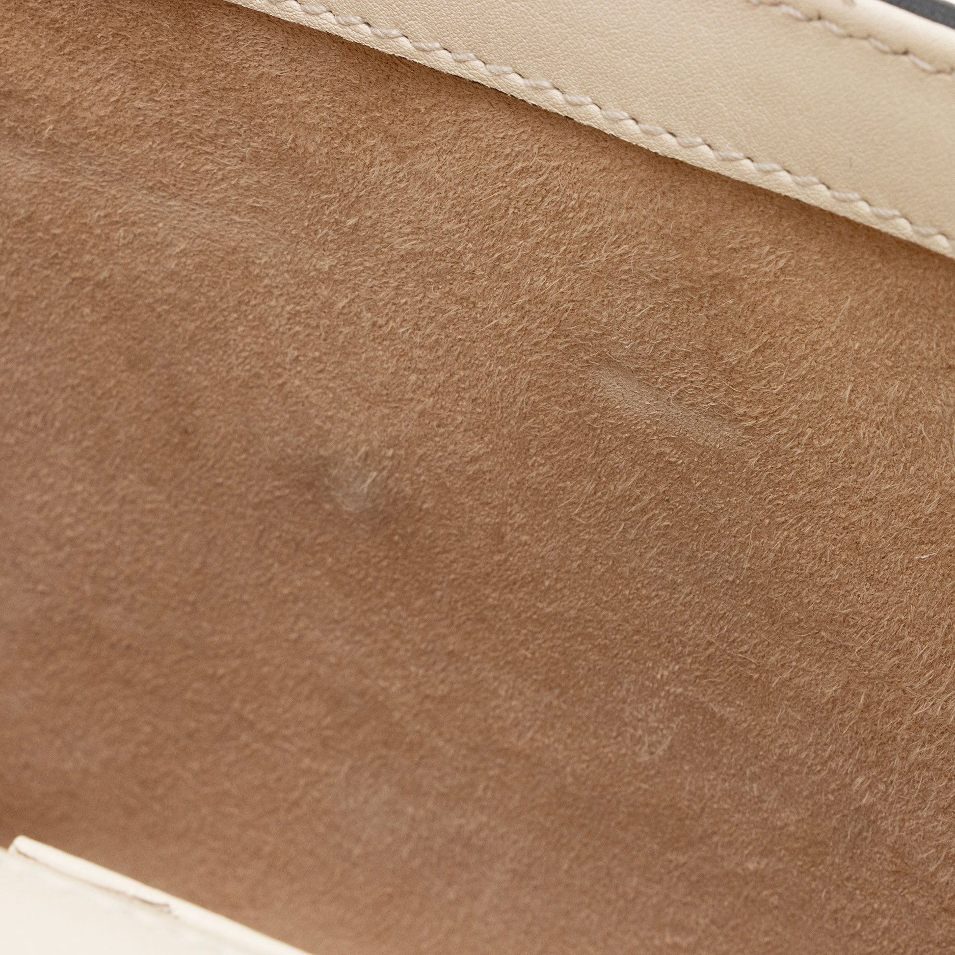 Condition Notes: Light marks and scuffs throughout exterior calfskin. Darkening and marks throughout exterior embroidery. Visible large mark to exterior base. Marks and cracking near shoulder strap bases. Moderate surface scratches and tarnishing to hardware. Marks and light darkening throughout interior.