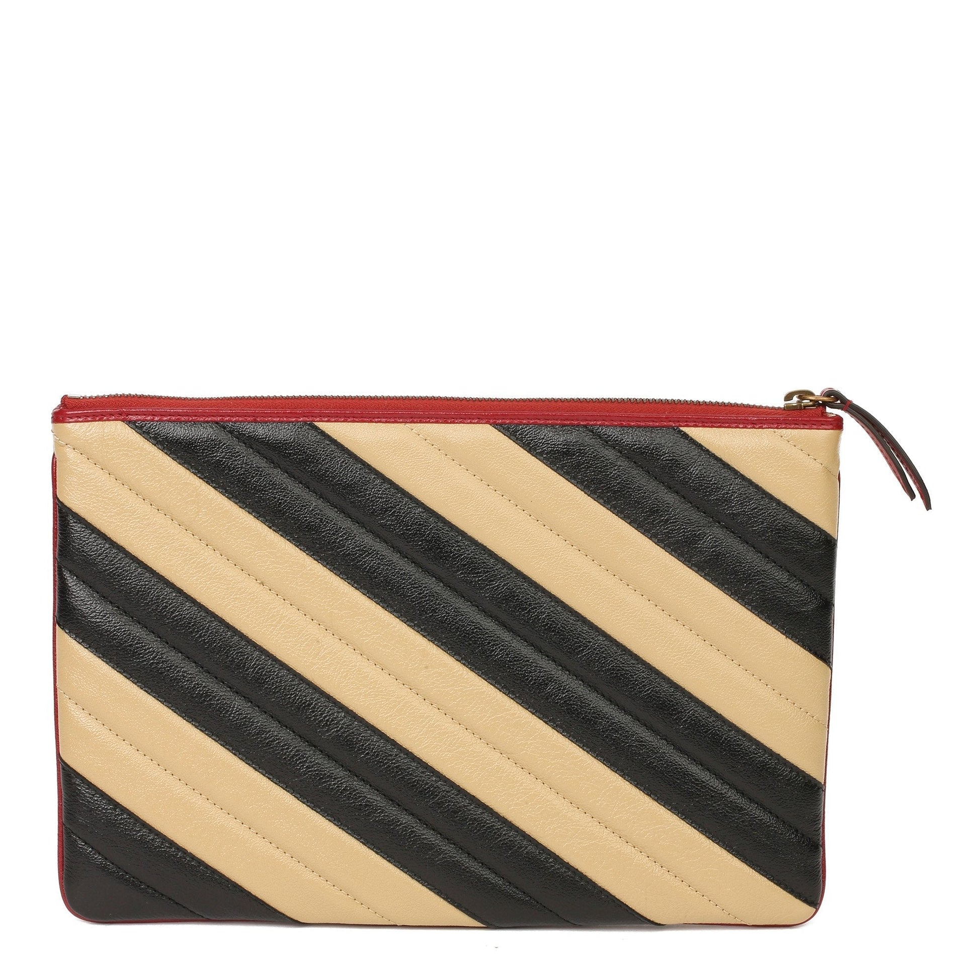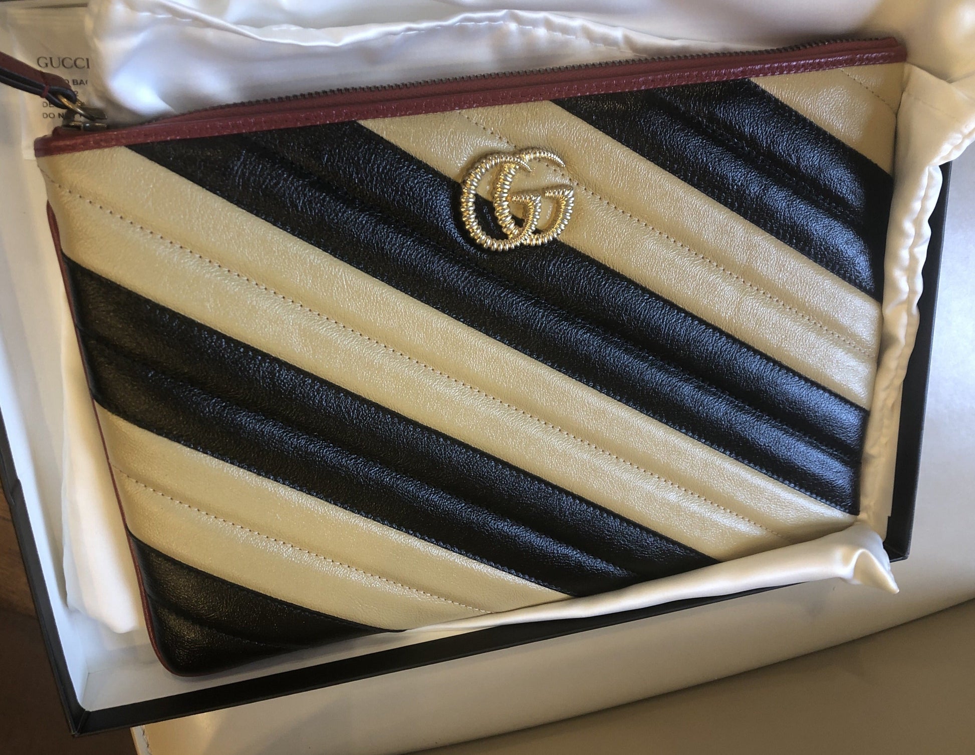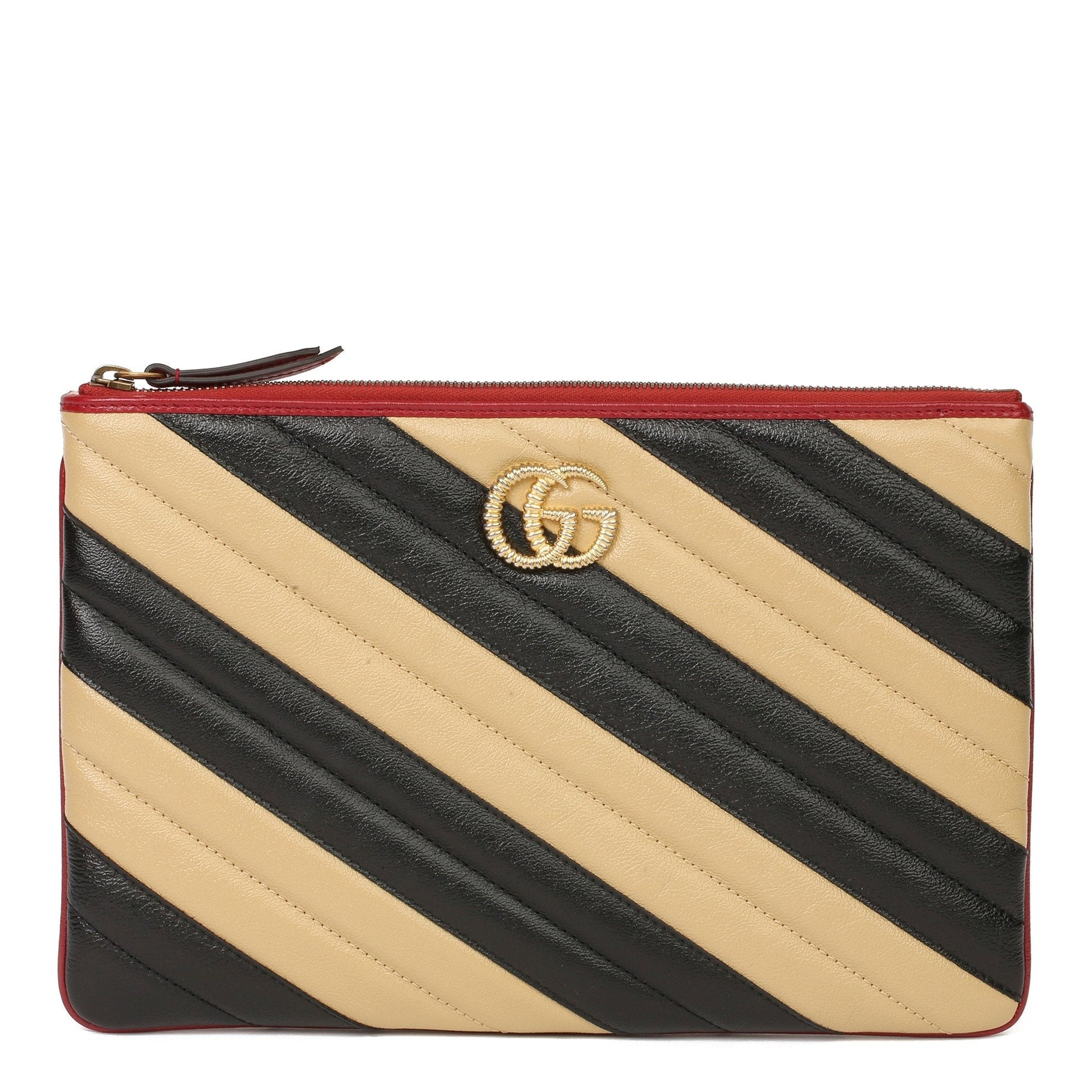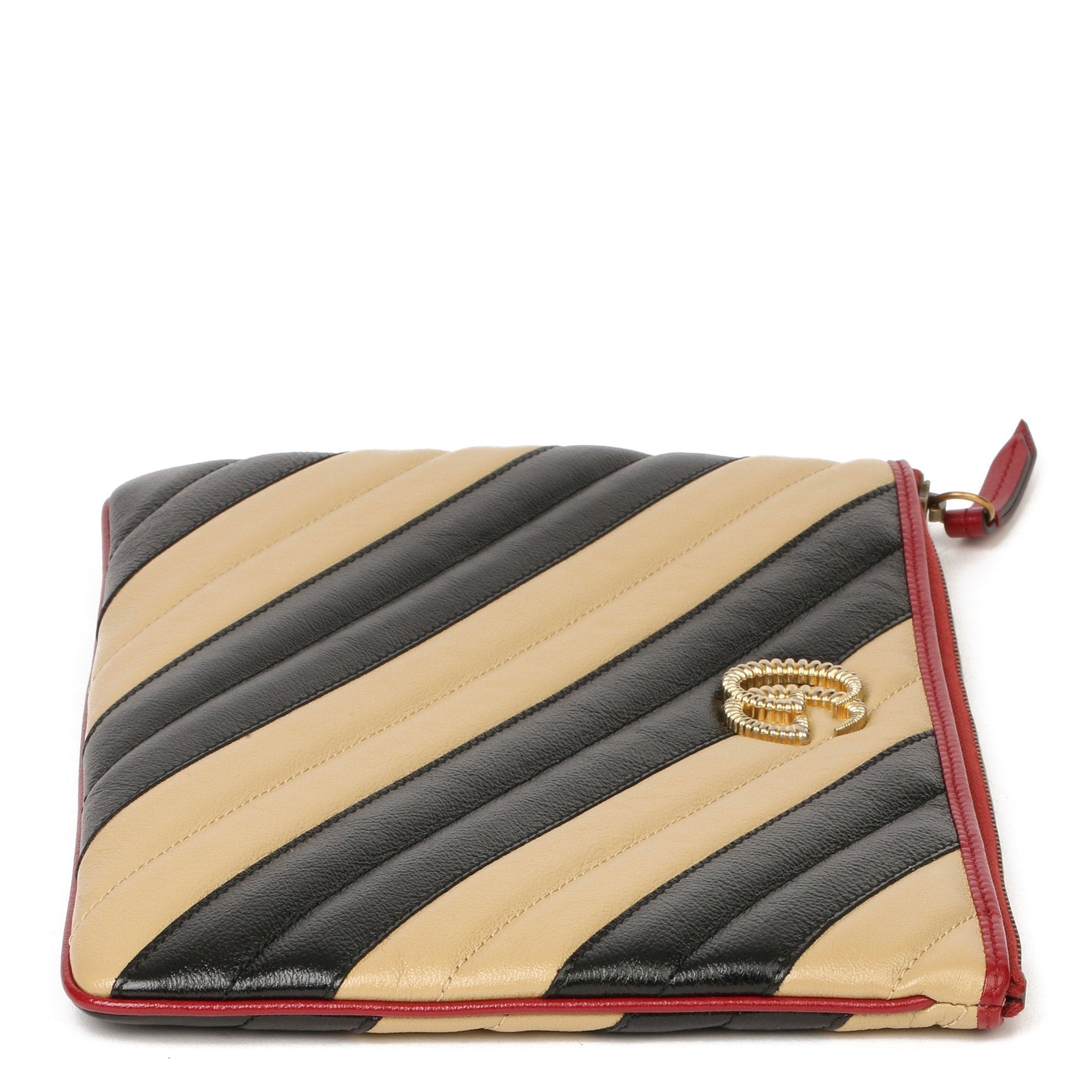 • Gucci Calfskin GG Marmont Quilted Leather Pouch in Beige and Black