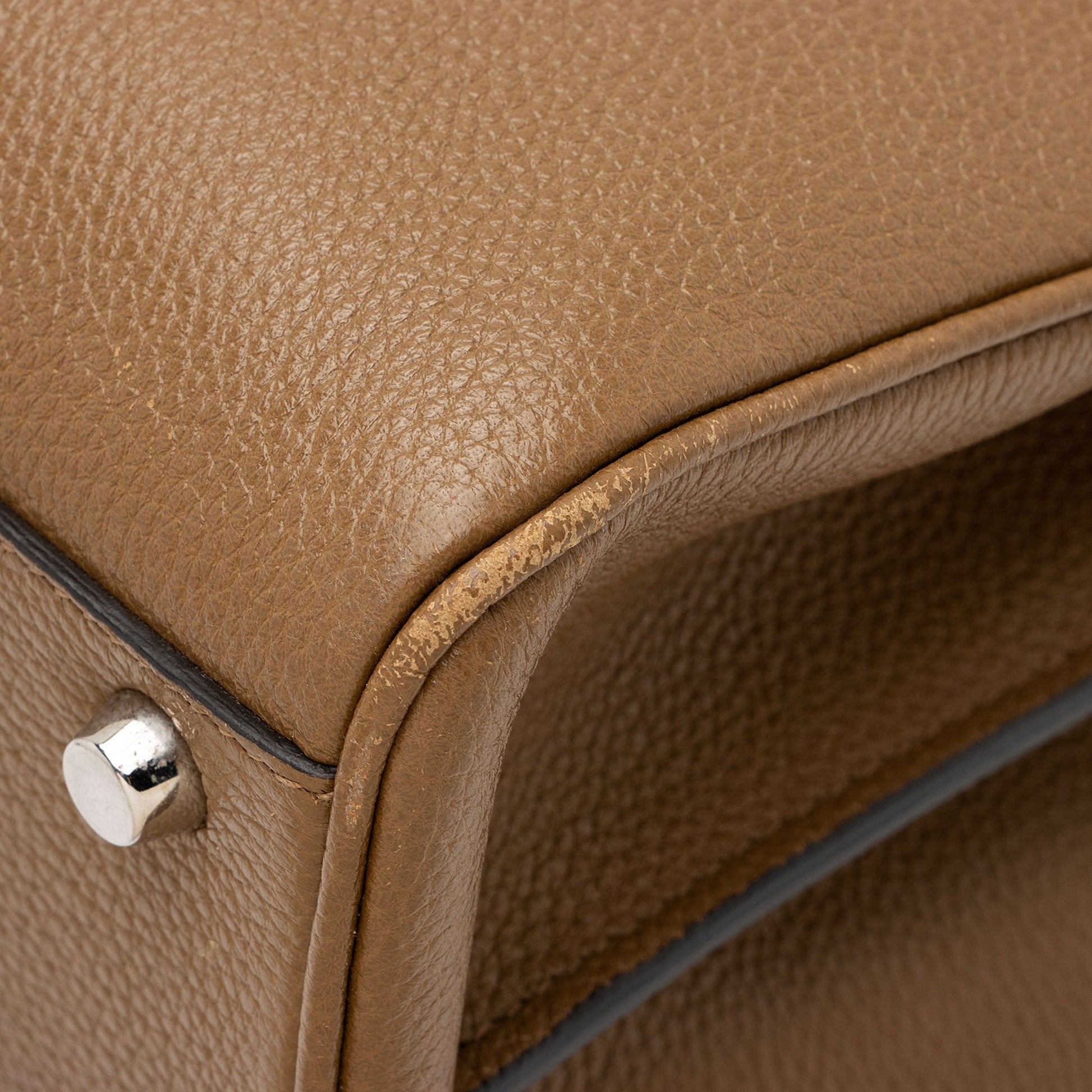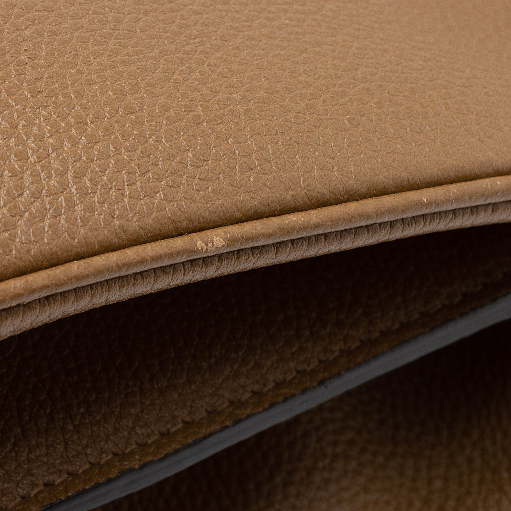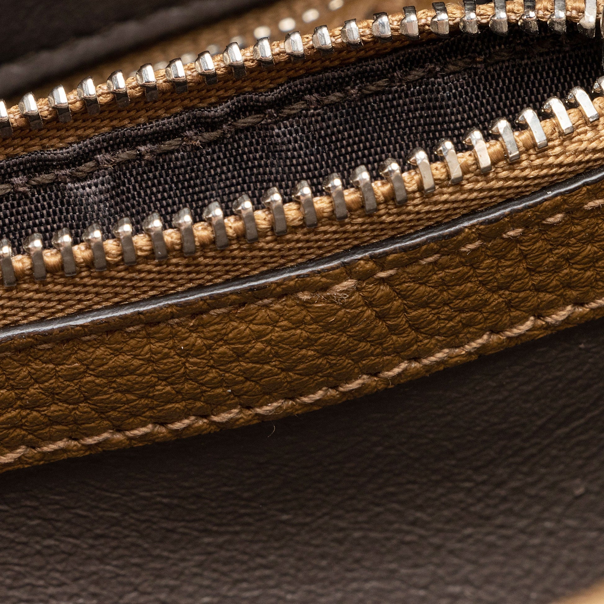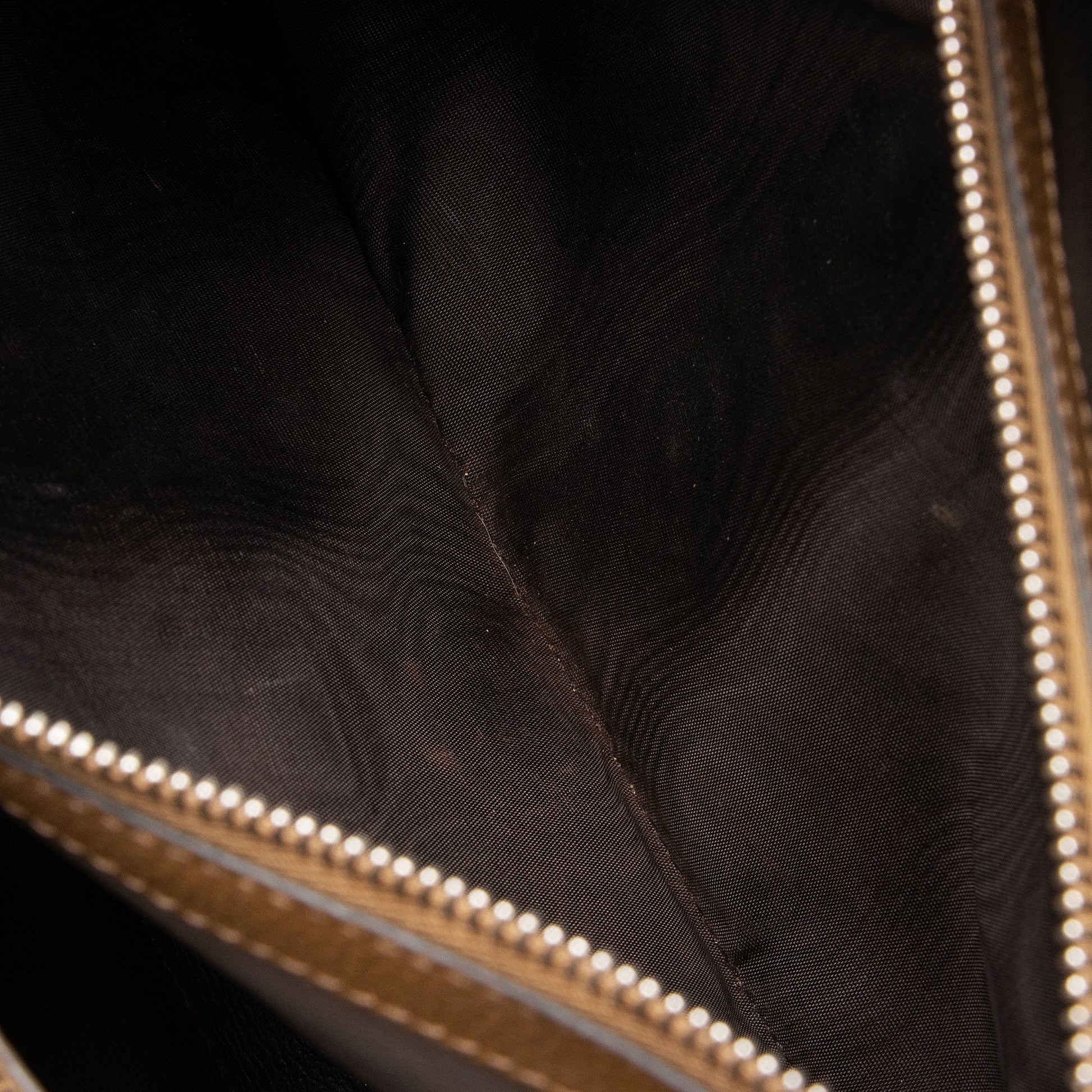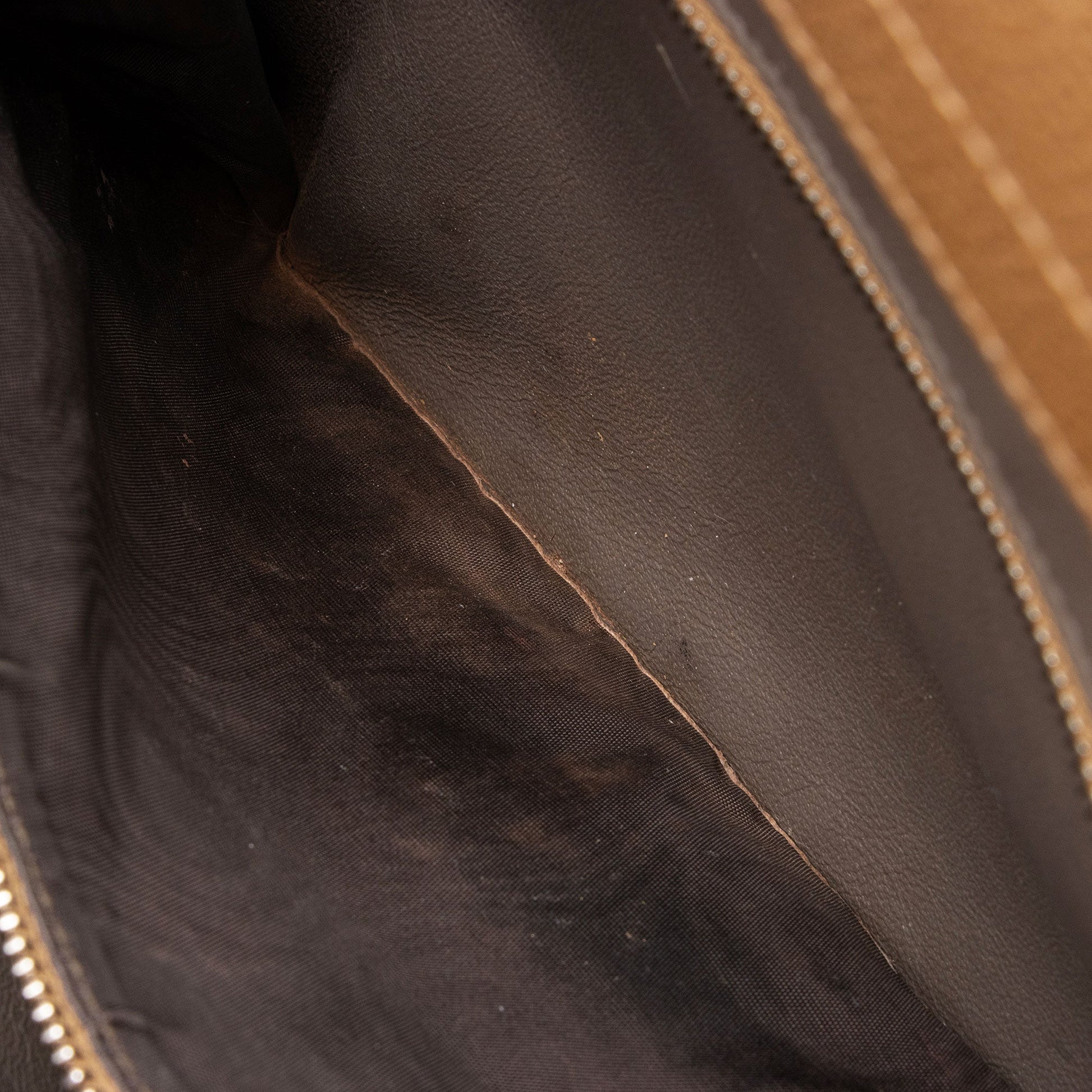 Condition Notes: Scuffs to exterior bottom corners. Light wear to exterior top corners. Light warping to shoulder strap. Light surface scratches to hardware. Marks and wear throughout interior.