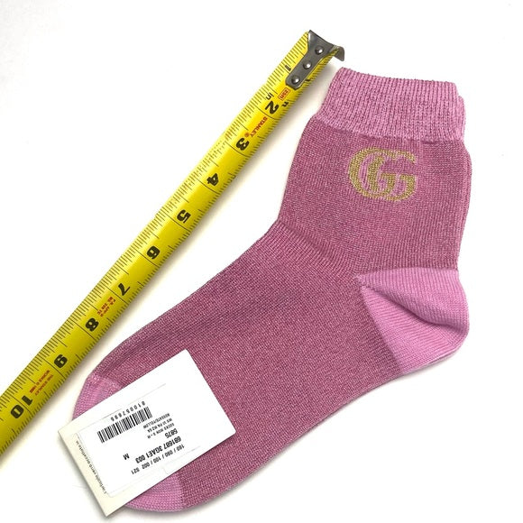 Add some pep and funk to your feet with these Gucci ankle socks. TheGold threading in the interlocking GG gives a touch of sparkle. Shine on with these socks! Perfect for giving the gift to a loved one or set gifting!