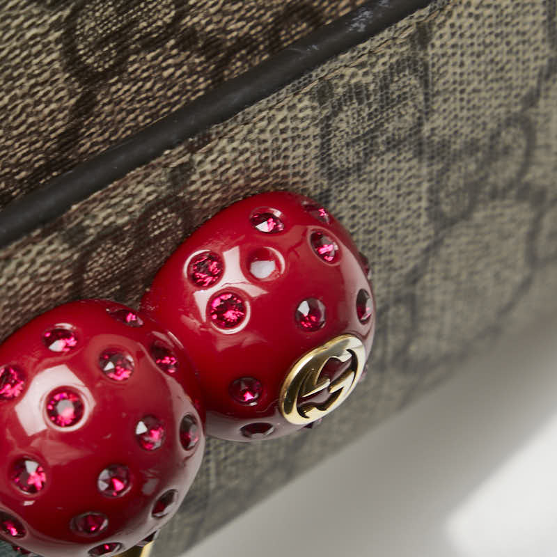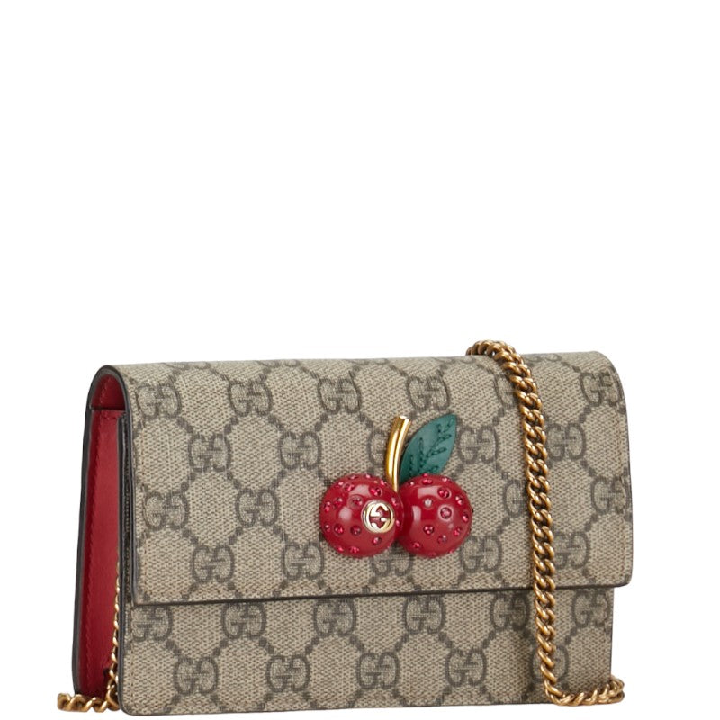 Gucci Cherry Chain Shoulder Bag 481291 Beige PVC Leather  Gucci