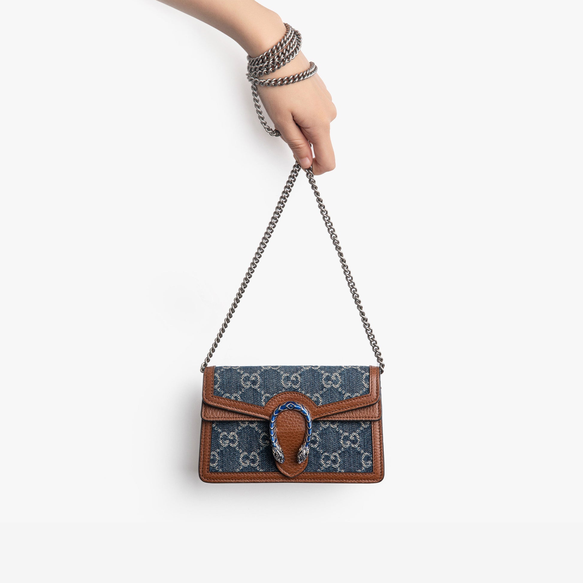 (WMNS) Gucci Dionysus Logo Denim Messenger Bag Gray Blue / Brown Retro 476432-2KQFN-4483