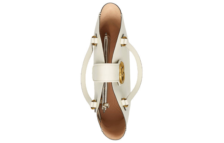 (WMNS) Gucci Gold Label Logo Leather Tote Shoulder Bag Small White Handbag 652680-1U10T-9022