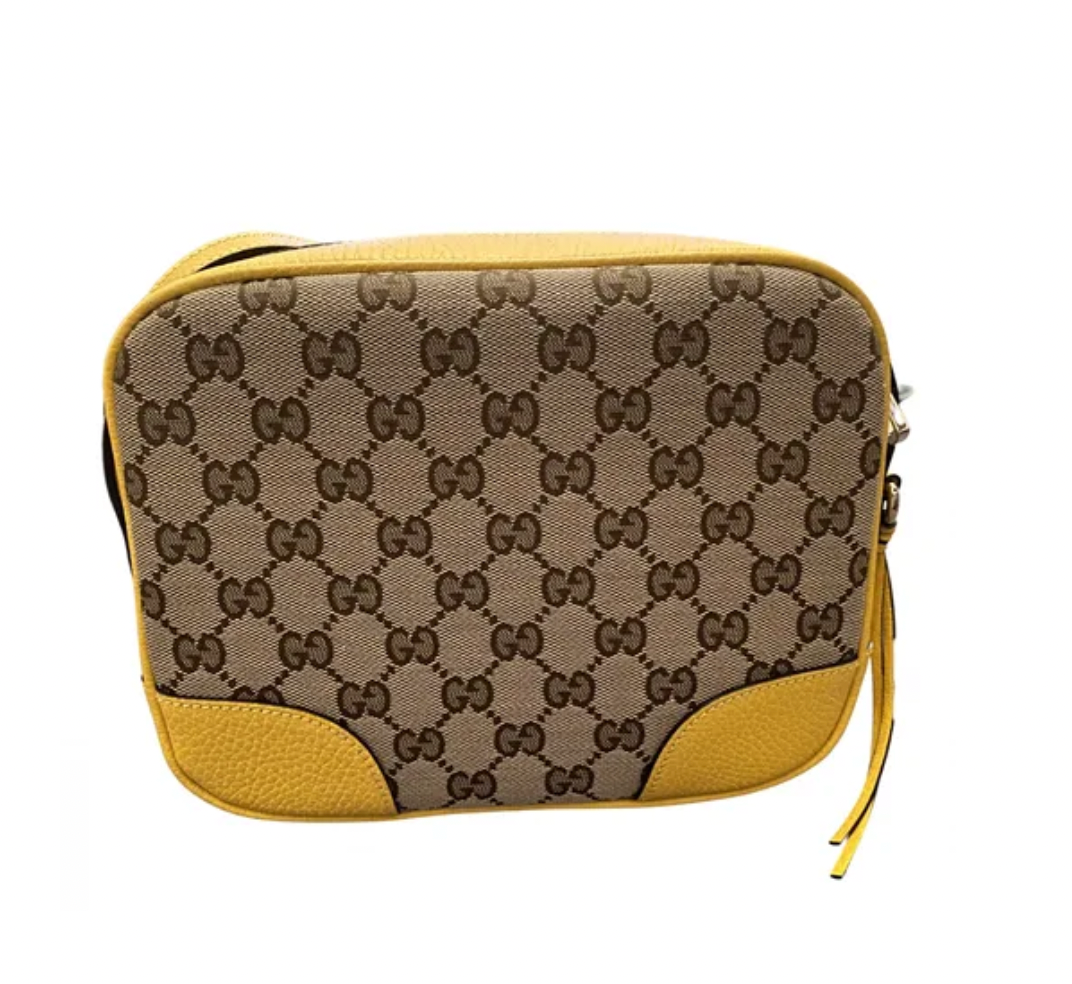 The Gucci Canvas Supreme Camera Bag Yellow is made in Italy from quality supreme canvas in the signature interlocking GG pattern, and trimmed with smooth calfskin leather.This crossbody bag features the guccissima pattern, reenforced edges, an adjustable strap, GG charm, slip pocket, and 8 card slots.