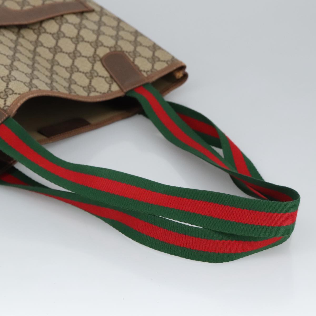GUCCI GG Supreme Web Sherry Line Tote Bag PVC Beige Gold 89 02 003  98727
