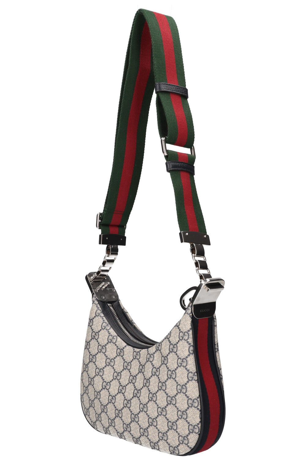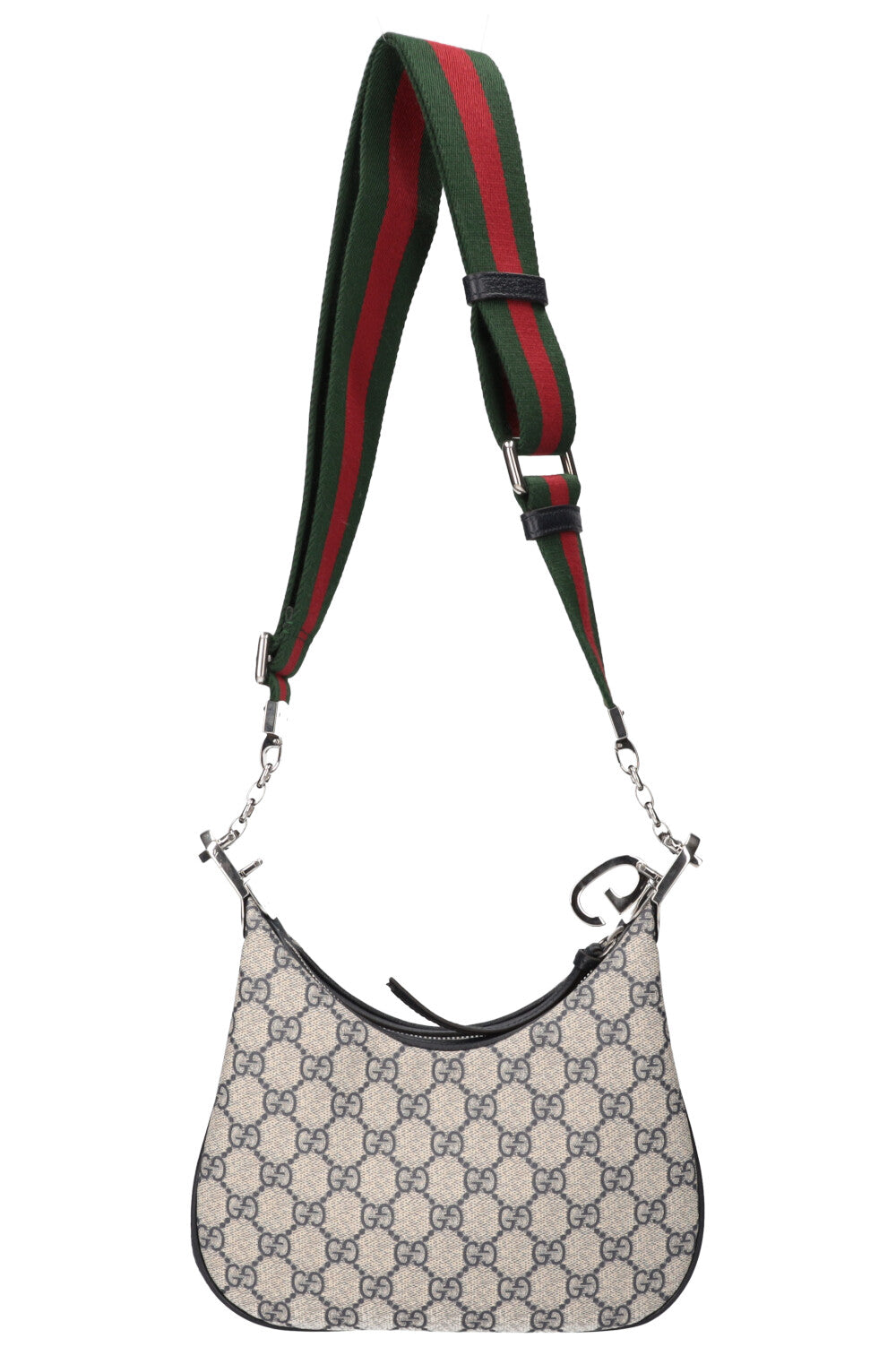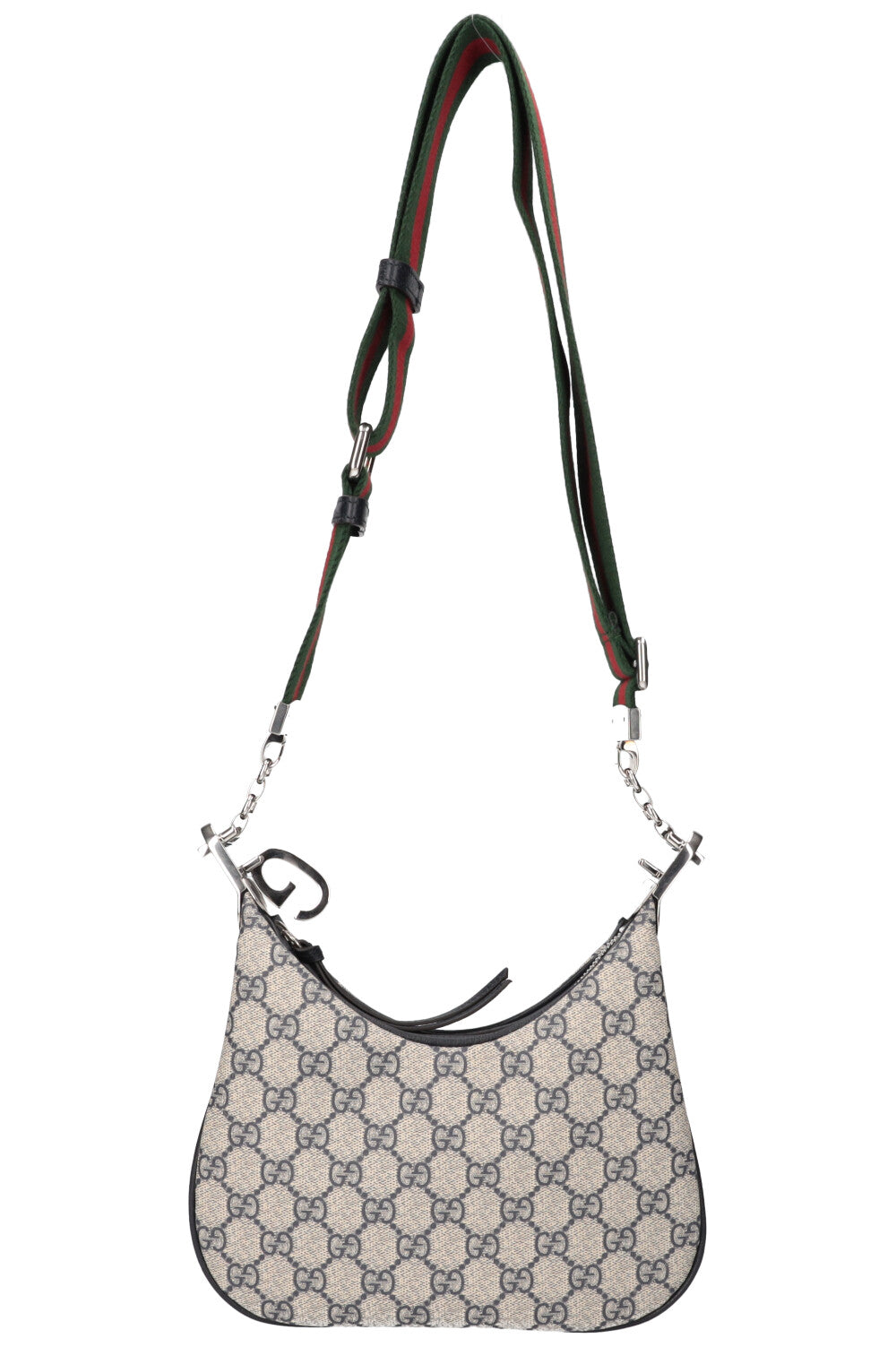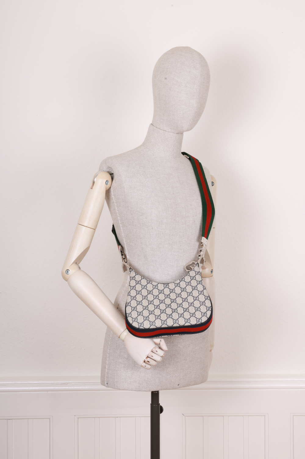 We love:Die zierliche Attache von Gucci, kann geffnet oder geschlossen getragen werden. Aus weichem Gucci Canvas gefertigt und mit Kontrast Stoffriemen versehen