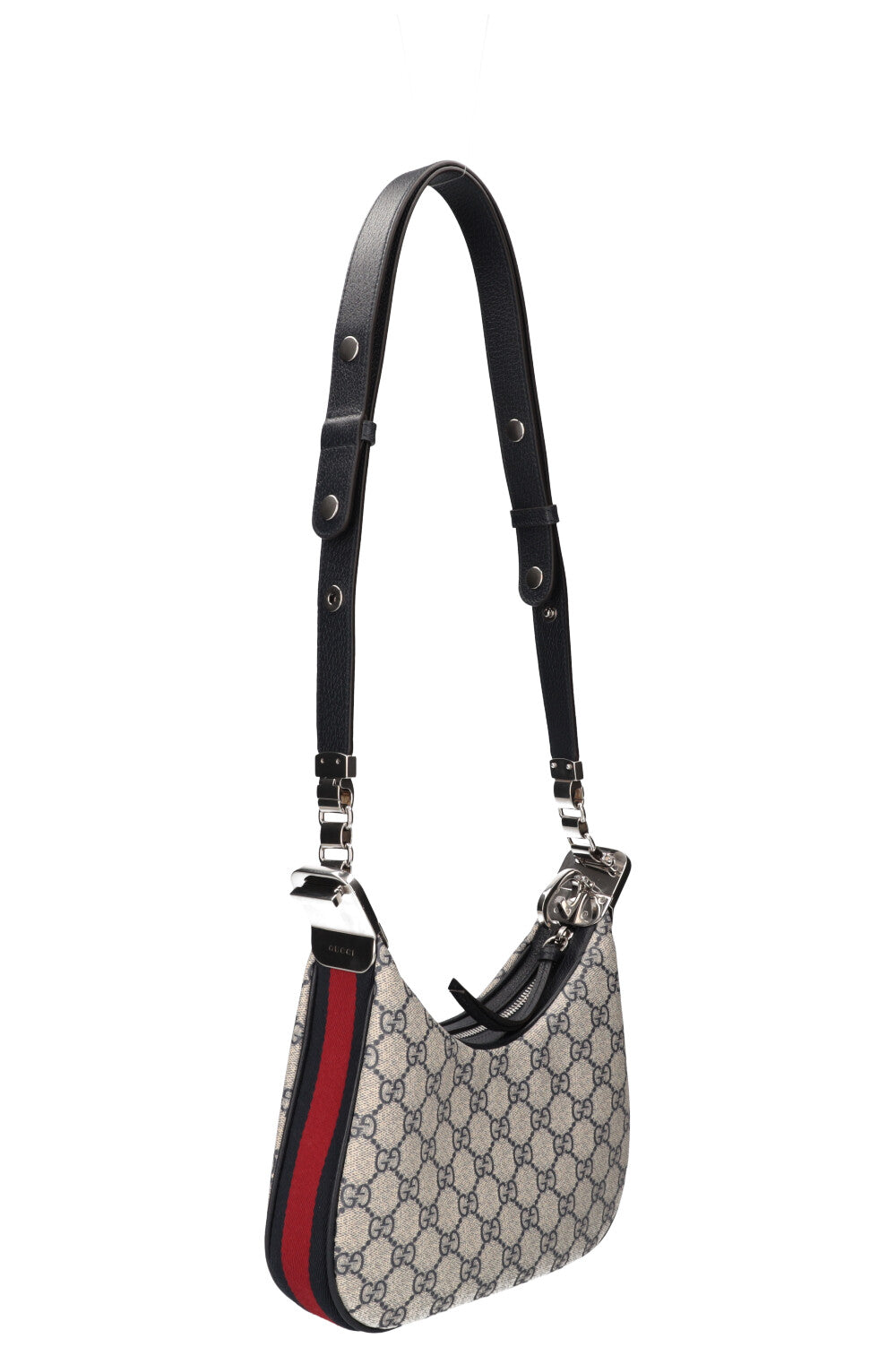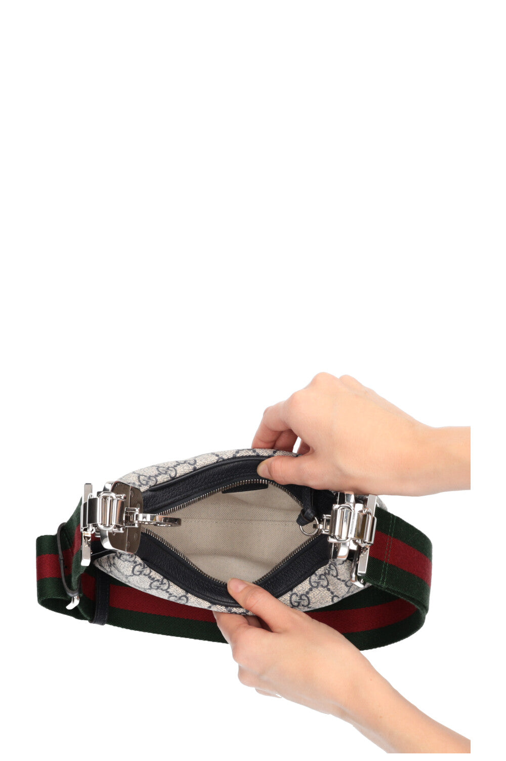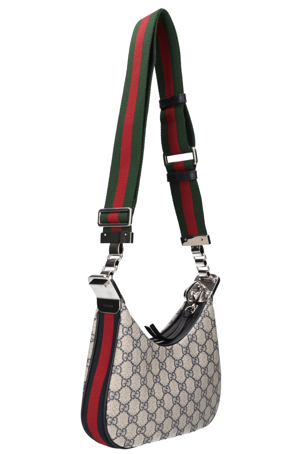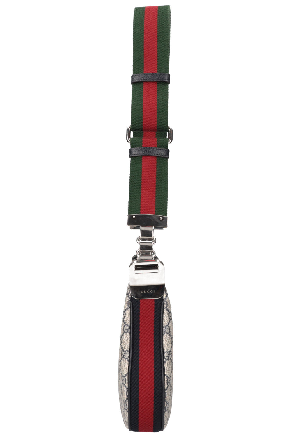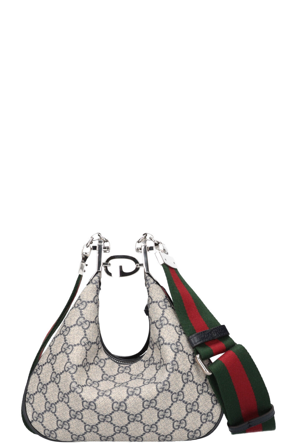 We love:Die zierliche Attache von Gucci, kann geffnet oder geschlossen getragen werden. Aus weichem Gucci Canvas gefertigt und mit Kontrast Stoffriemen versehen