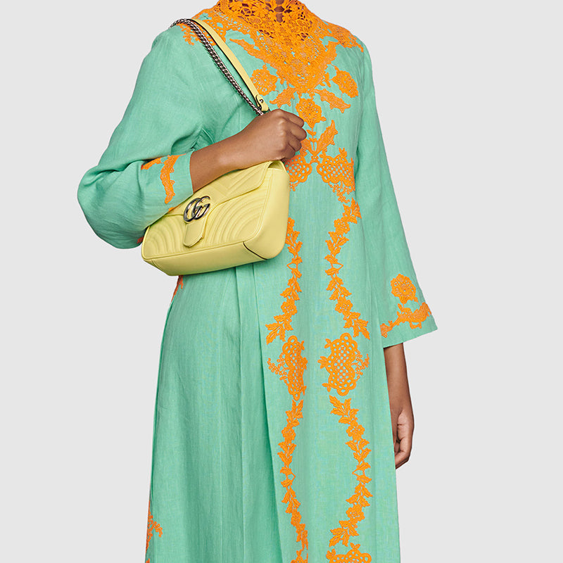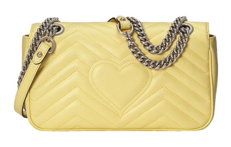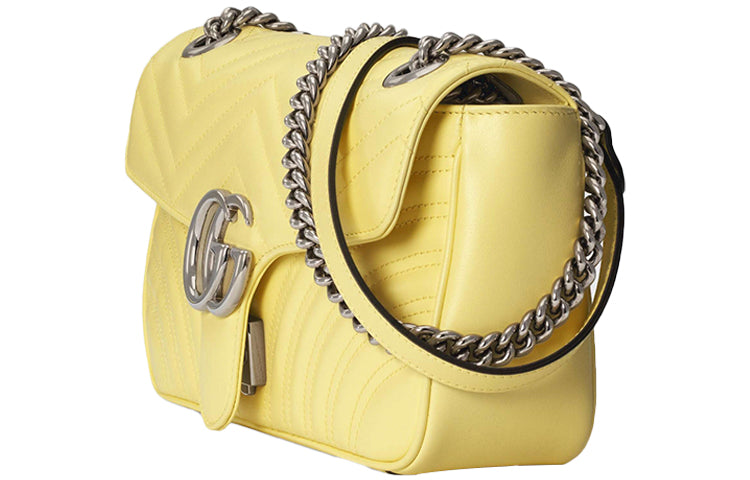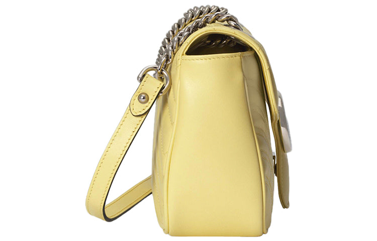(WMNS) Gucci GG Marmont Series LeatherChain bag SatchelSingle Shoulder Bag Small MacaroonYellow 443497-DTDIY-7412