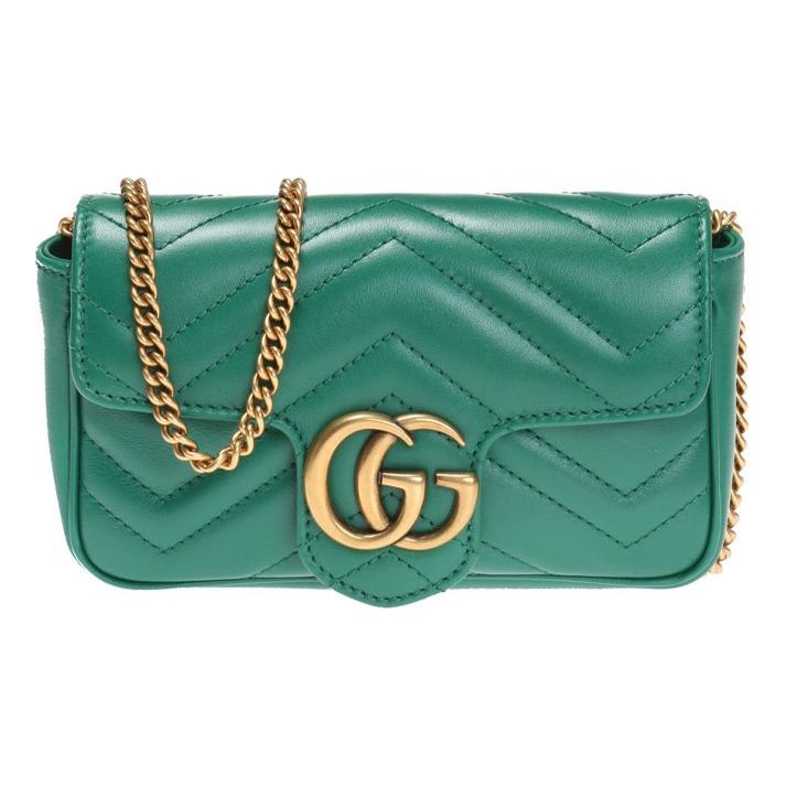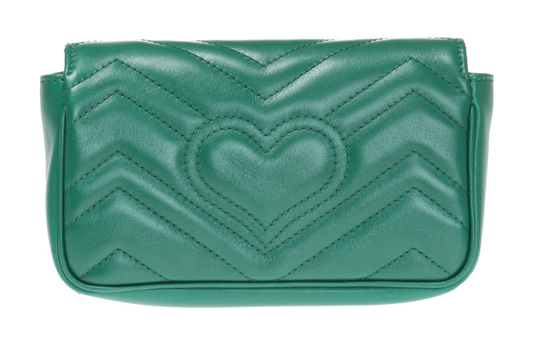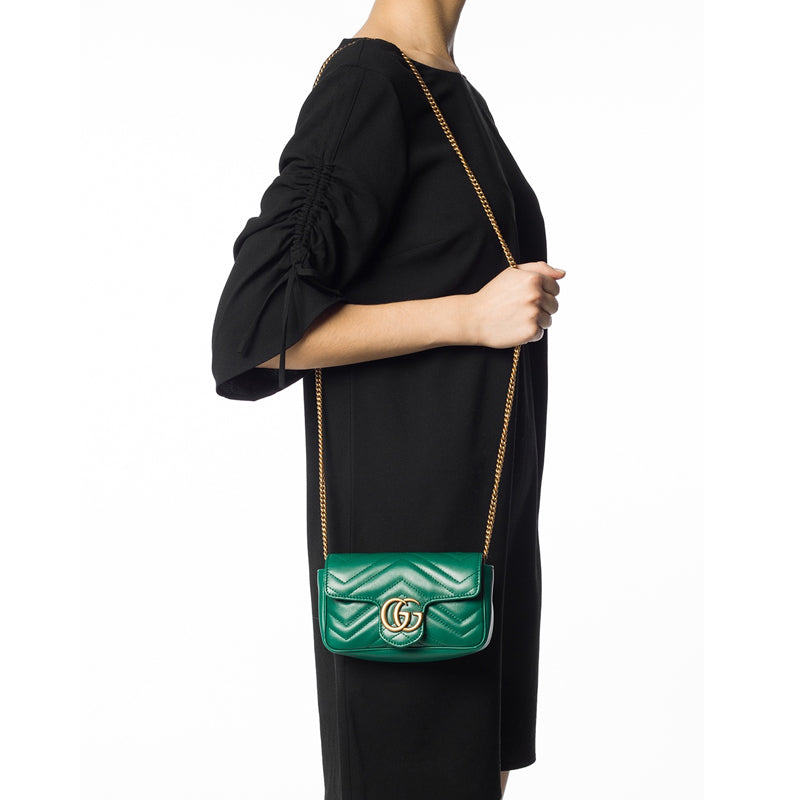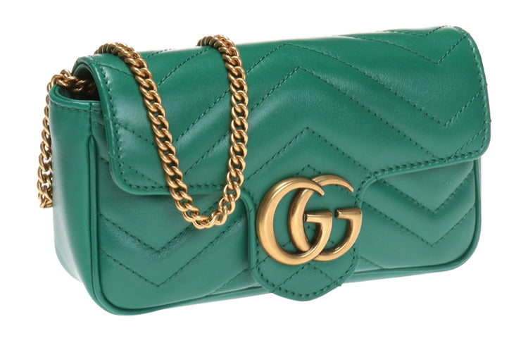 (WMNS) Gucci Leather GG Marmont Logo Quilting Chain Single-Shoulder Bag Super Mini Green 476433-DSVRT-3120
