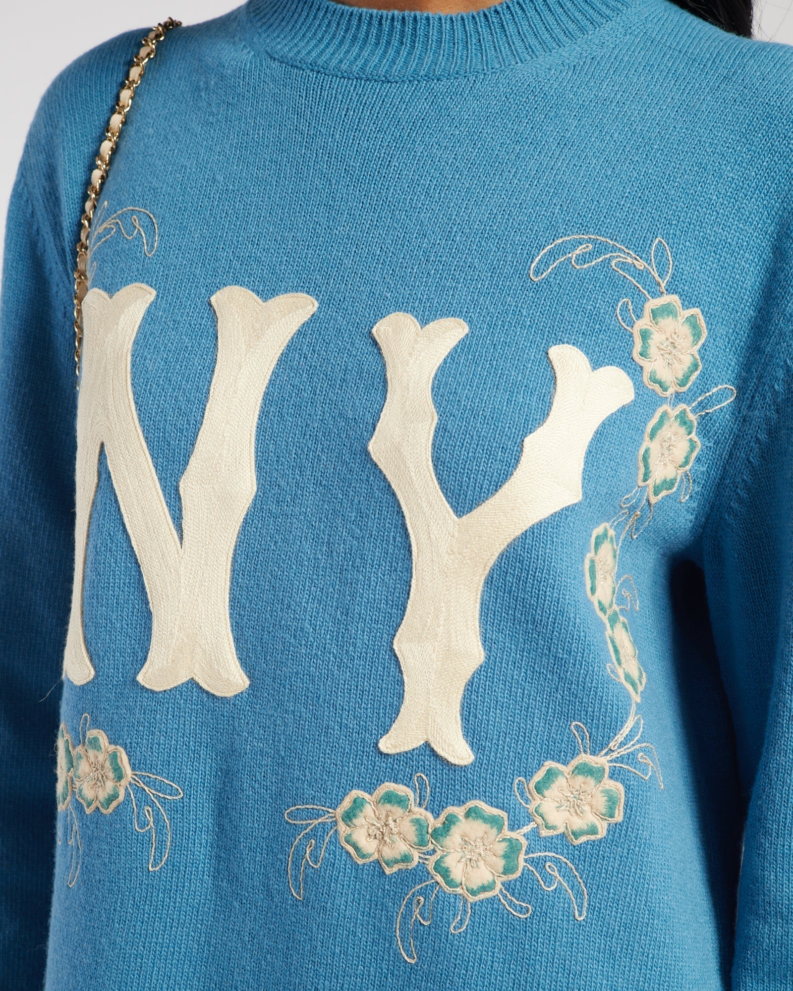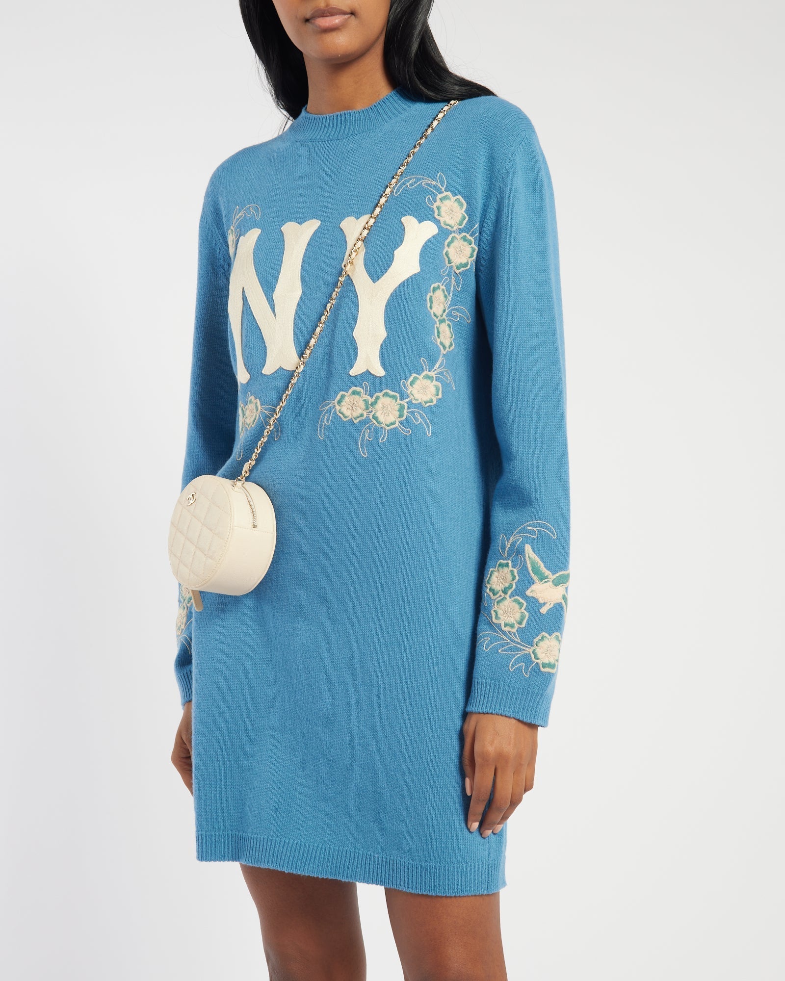Gucci Blue New York Yankees Embroidered Wool Knit Dress Size XS (UK 6)