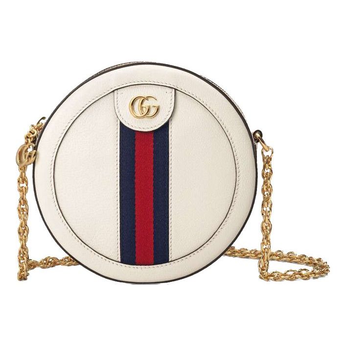 (WMNS) Gucci Ophidia Gold Logo Stripe Webbing Leather Chain Shoulder Messenger Bag Mini White 550618-CWG1G-8454