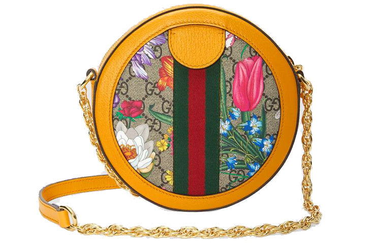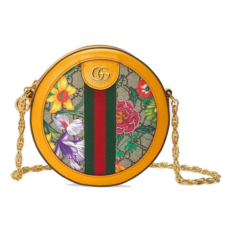 (WMNS) Gucci Ophidia Flowers Stripe Webbing Canvas Shoulder Bag 'Yellow Beige Multi' 550618-92YAC-9781
