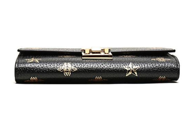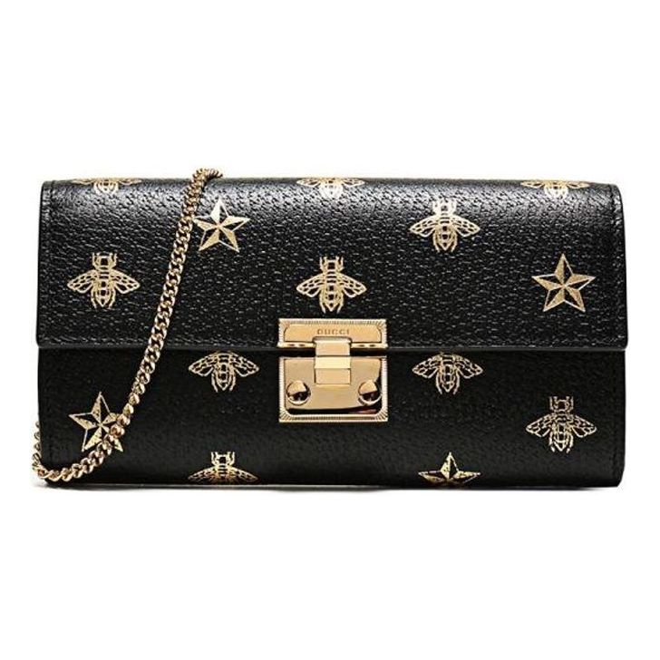 (WMNS) Gucci Padlock Metallic Bee Star Printing Leather Chain Wallet Shoulder Bag Armpit Black Handbag 453506-DJ2KG-8474