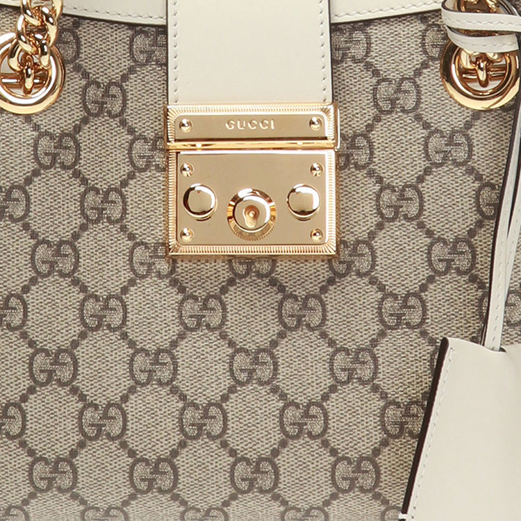 (WMNS) Gucci Padlock Metallic Logo Canvas Chain handbag Small / White 498156-KHNKG-9761