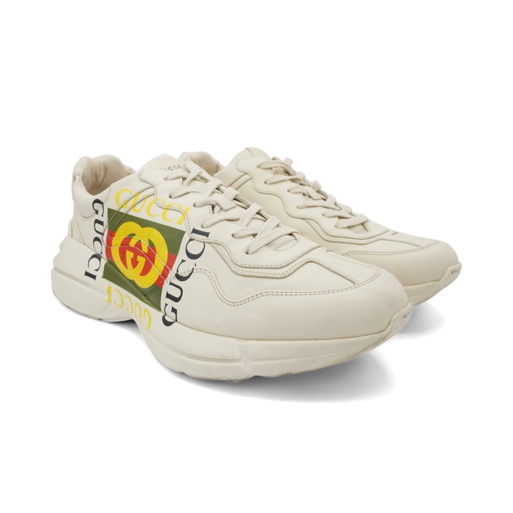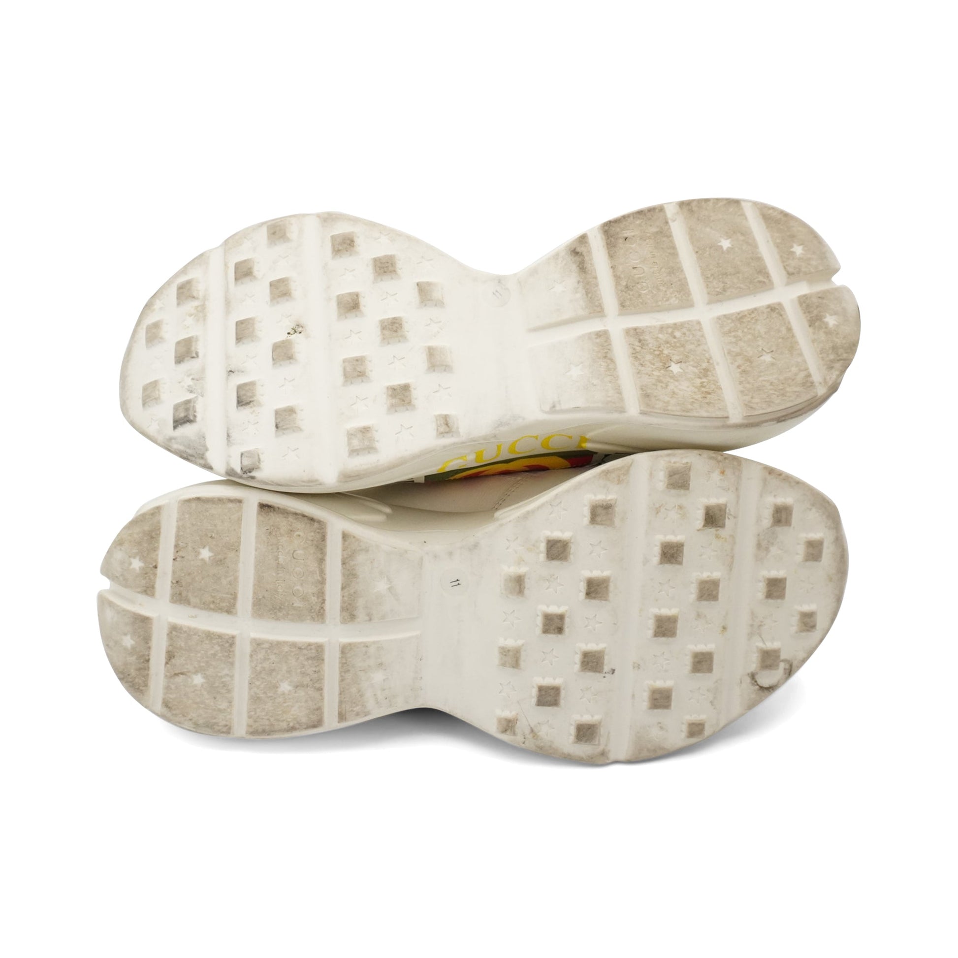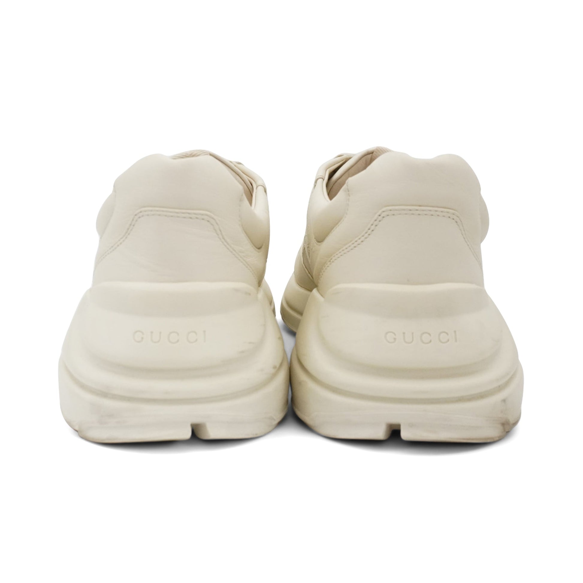 Gucci 'Rhyton' chunky sneakers in cream leather with vintage logo print on the outer side of the shoe.