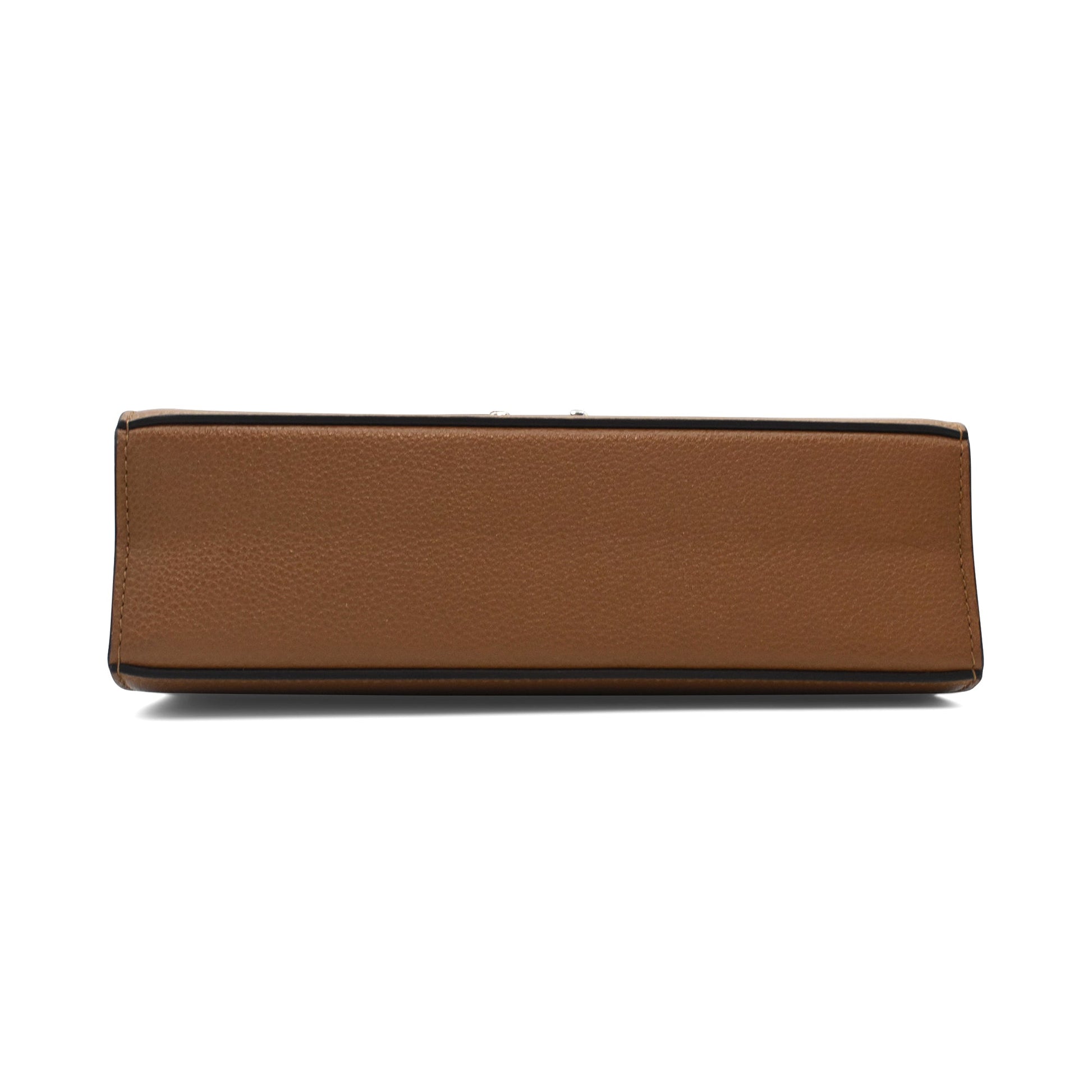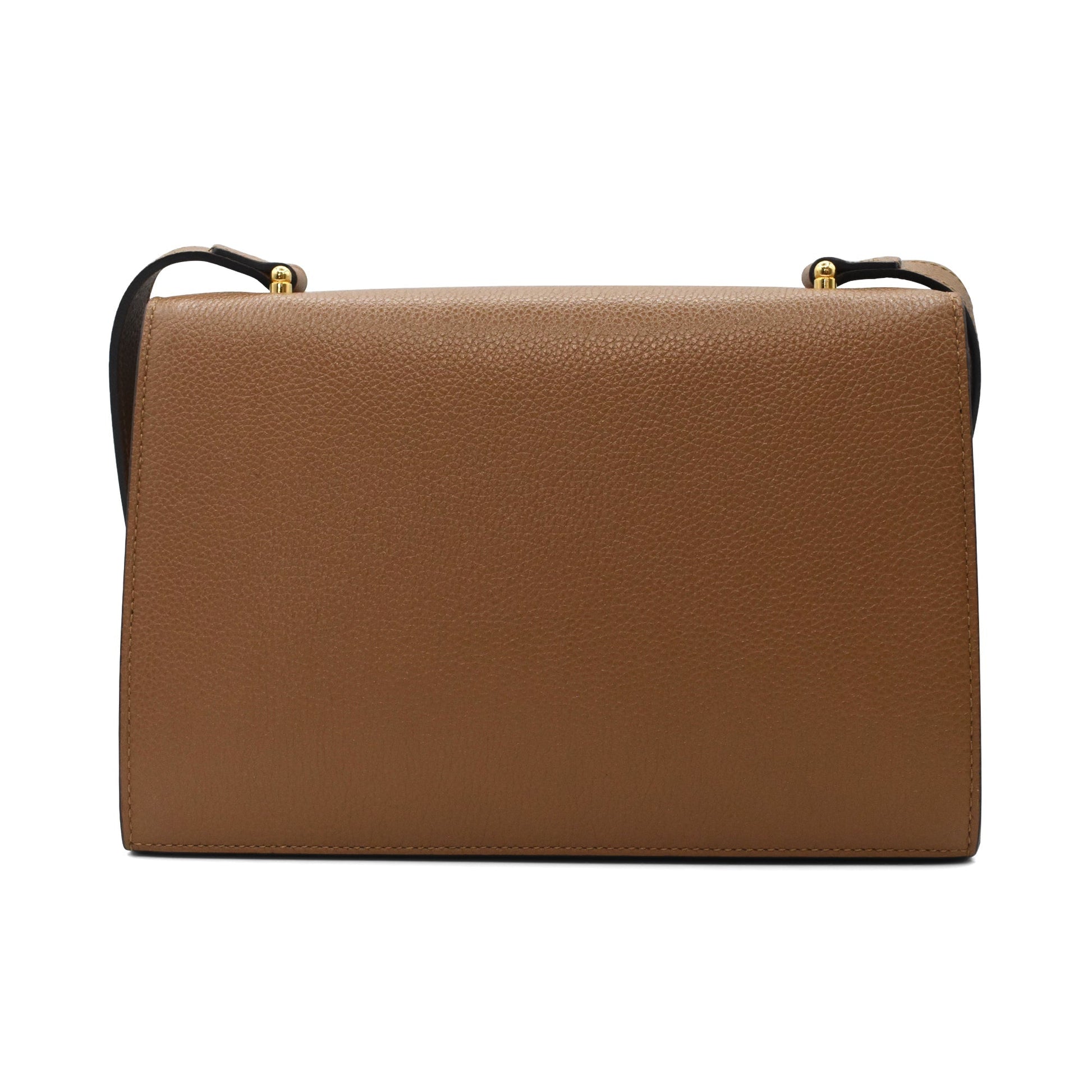 Gucci 'Zumi' crossbody bag in brown pebbled leather with an adjustable crossbody strap and a silver and gold interlocking 'G' and horse bit detail on the front. The bag has a top flap opening with a push-lock closure, revealing an accordion style interior with grey nylon lining and a zip pocket.