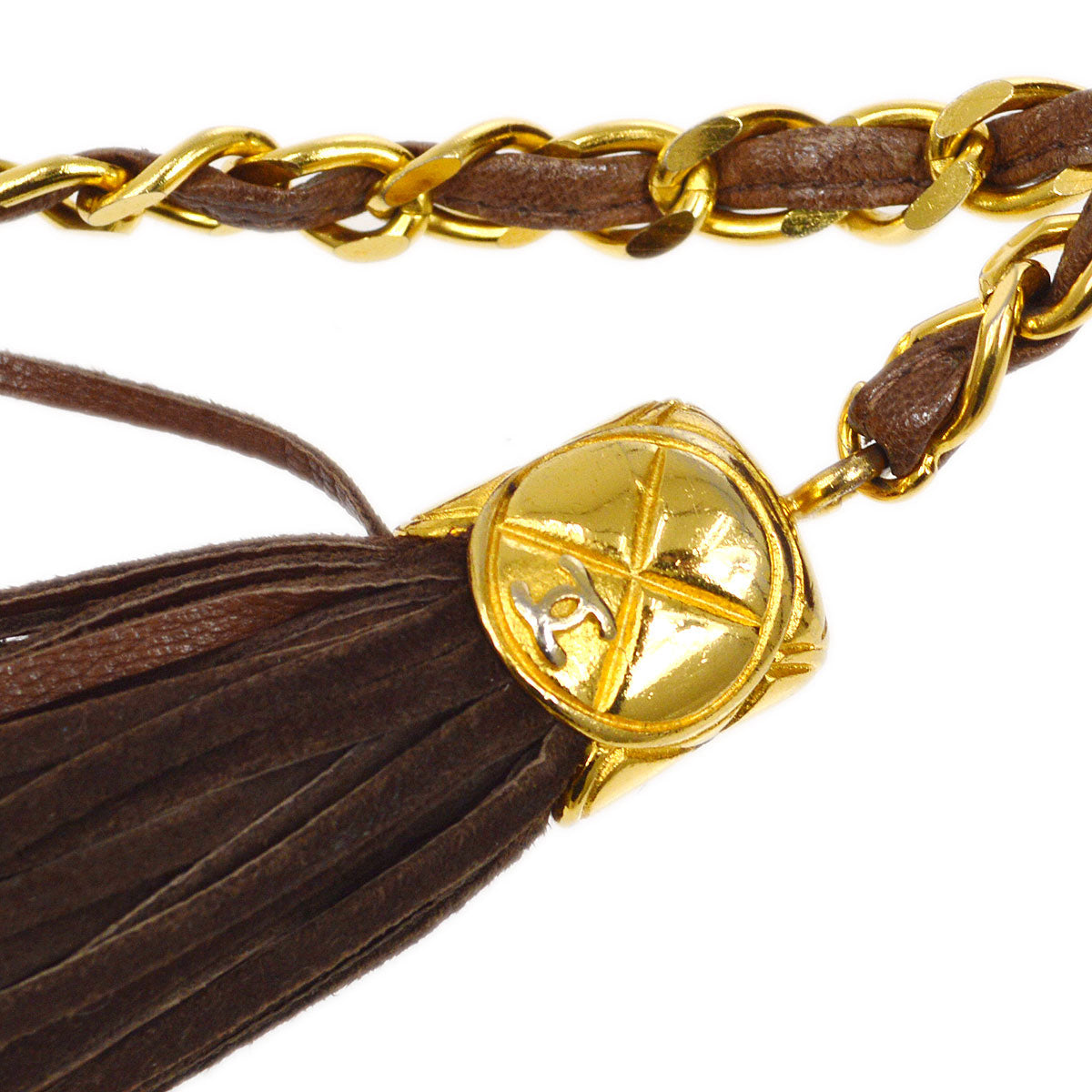 CHANEL Fringe Chain Shoulder Bag Brown Suede