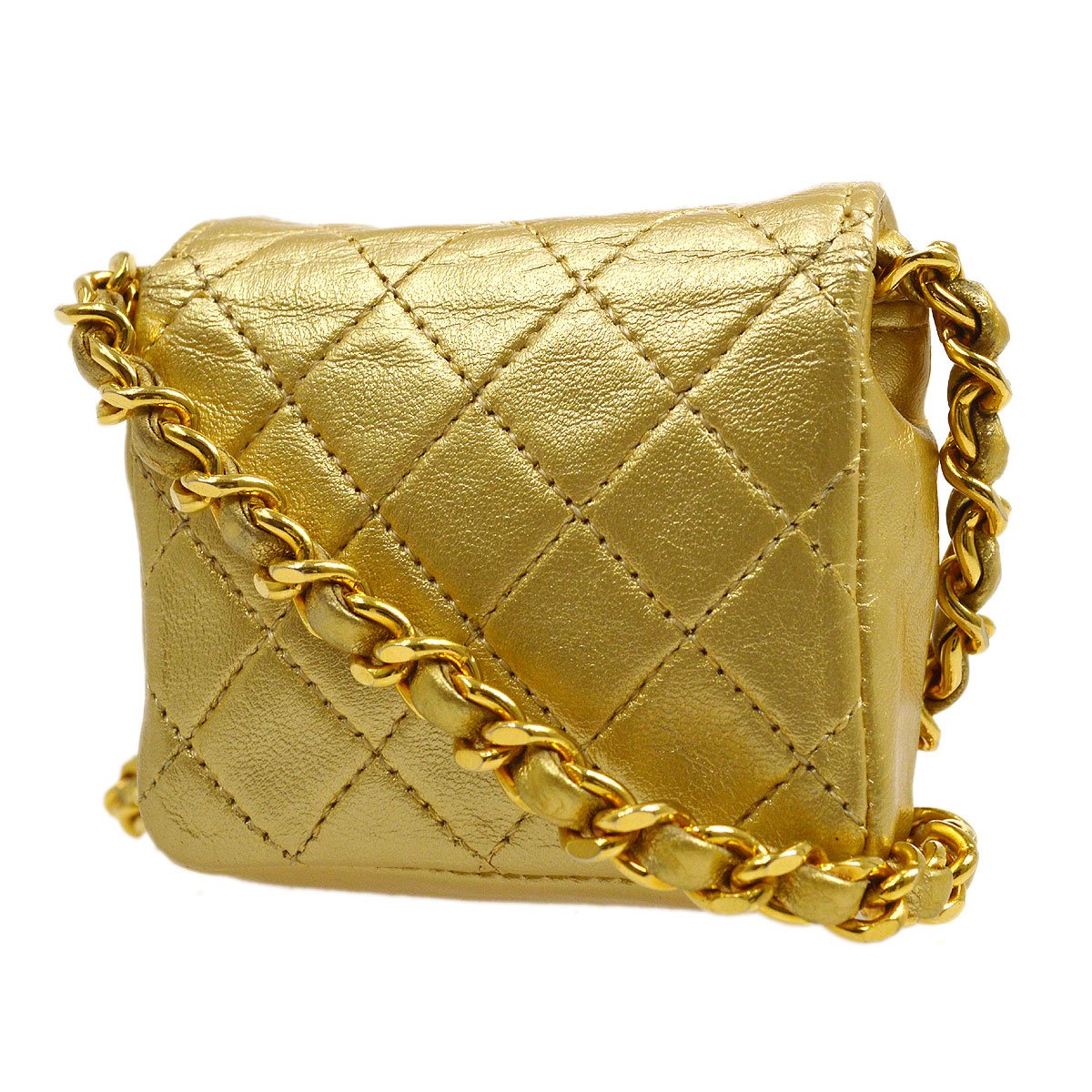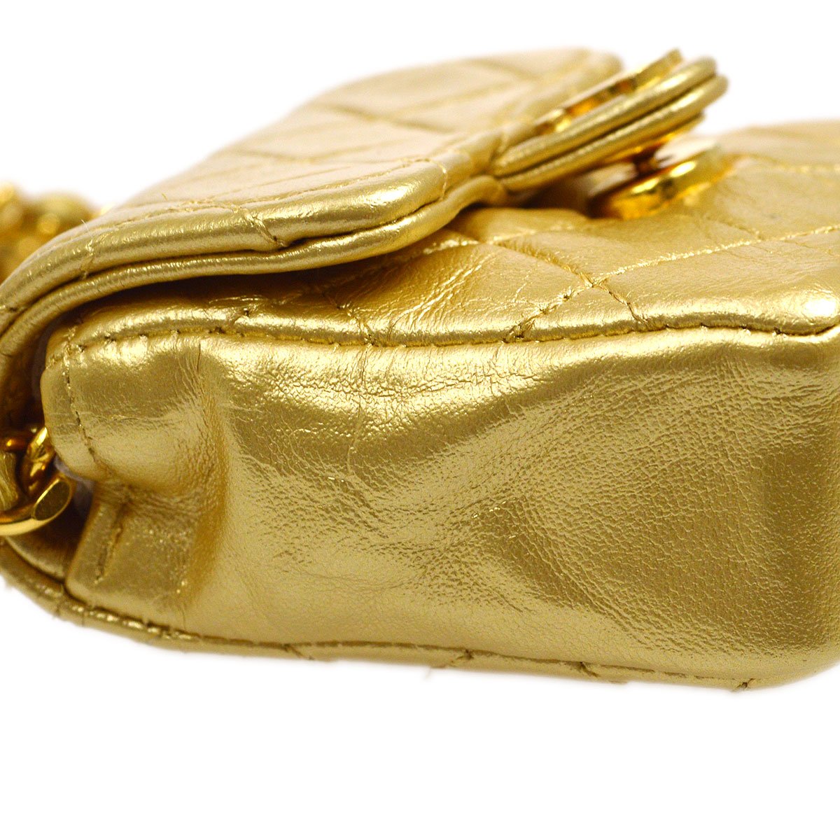 CHANEL Classic Flap Micro Shoulder Bag Pochette Gold