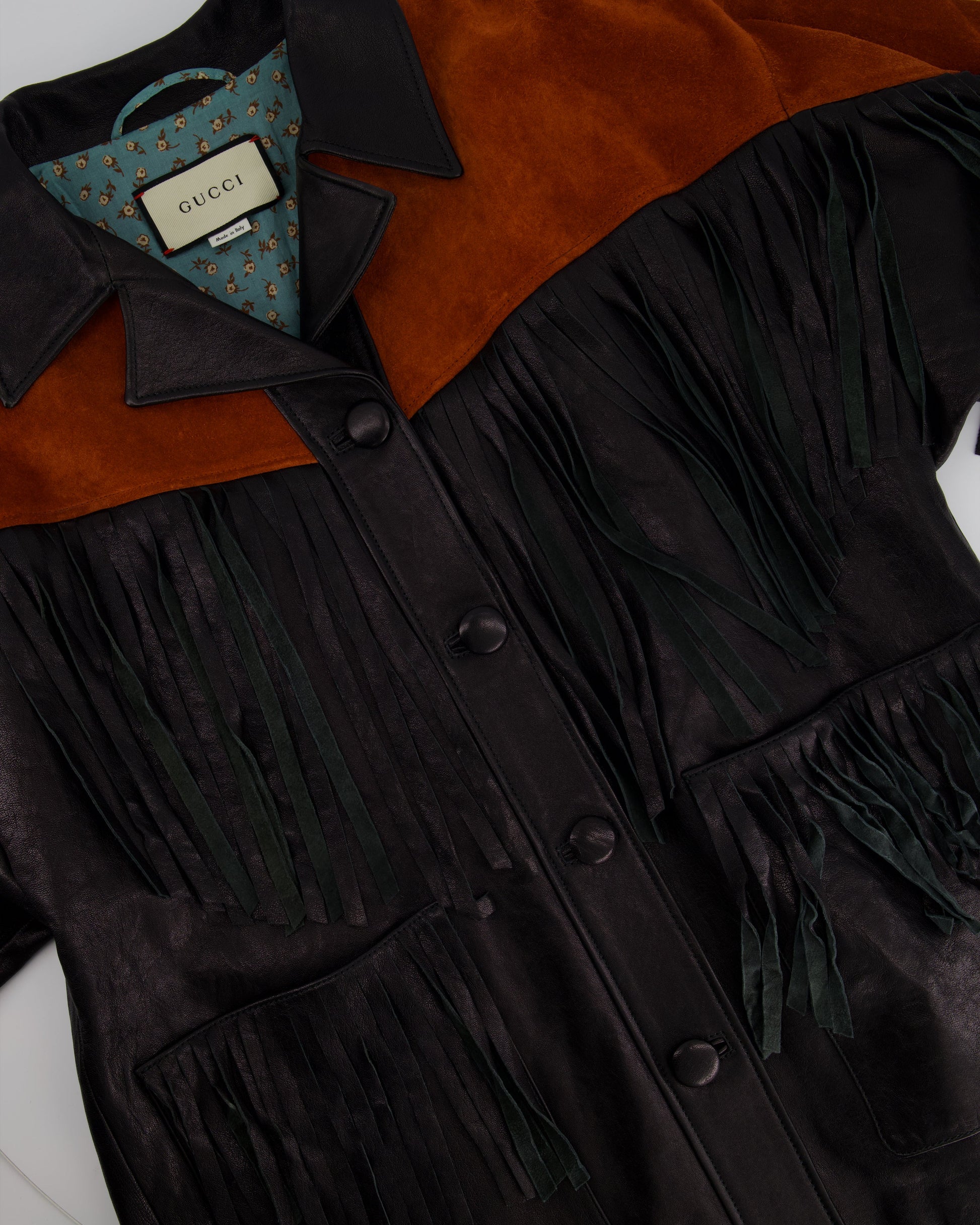 Gucci Black and Orange Leather Fringe and Studded Jacket in Size IT 36 (UK 4)