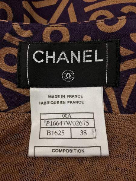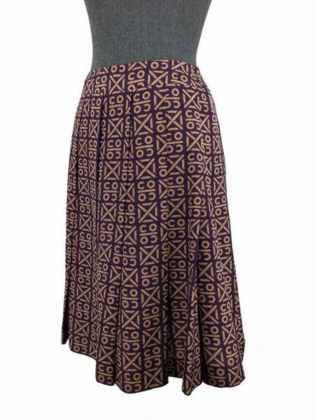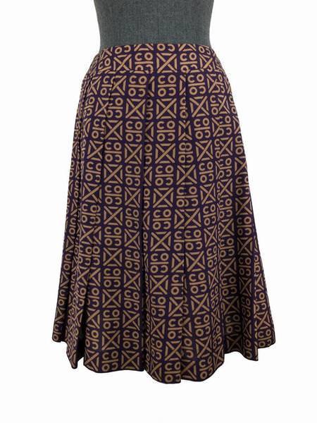 We the ity of this, never before used,brand new d CHANEL 00A COCO SilkSkirtSize S in copper and plum purple 'COCO' silk print lining.