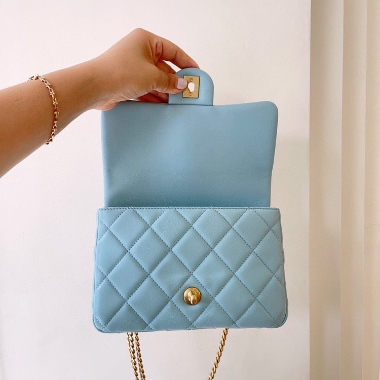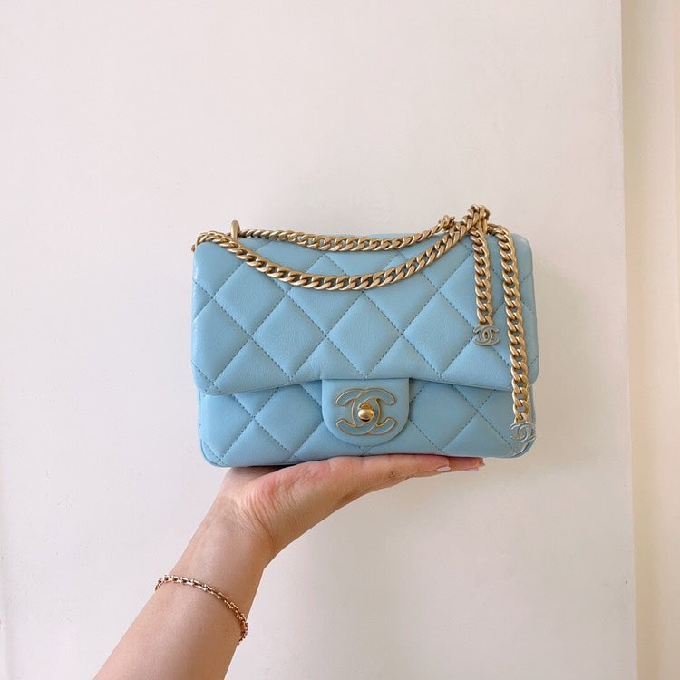 Chanel 2022 Mini Pearl Crush Flap Bag, Blue
