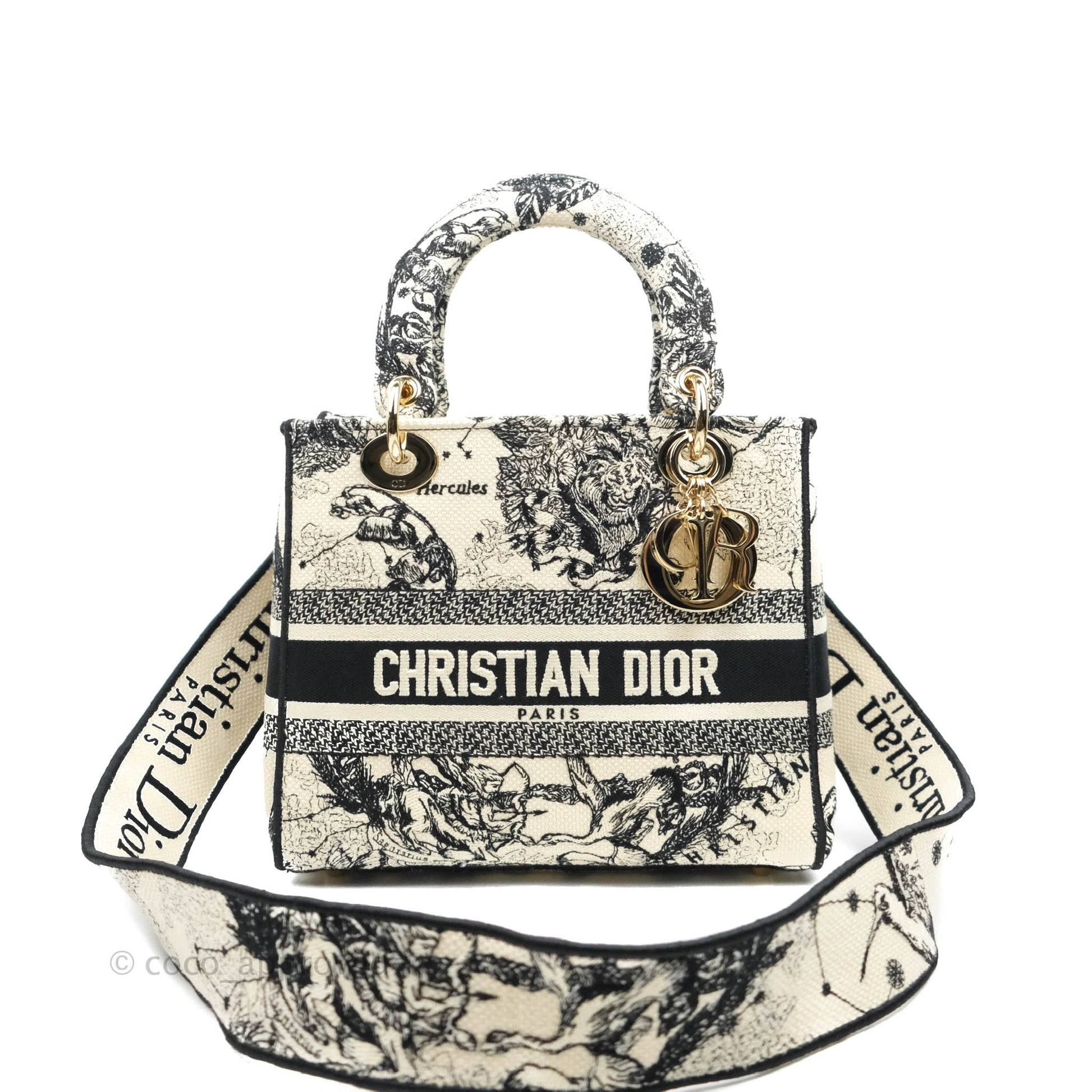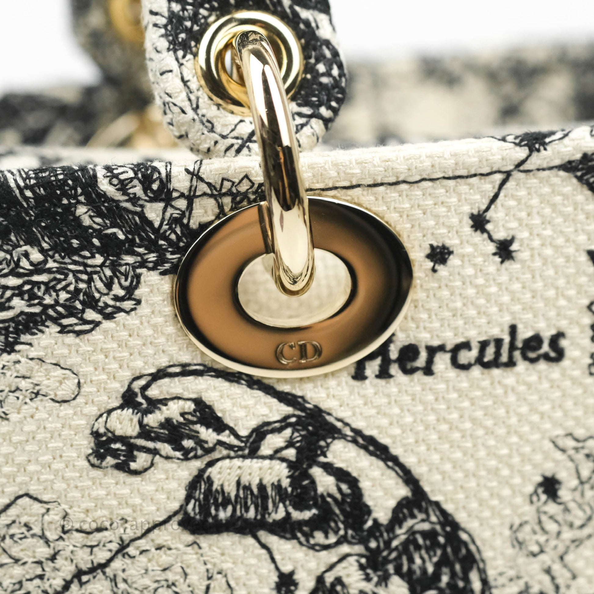 Christian Dior Medium Lady D-Lite Toile de Jouy Zodiac Embroidery Gold Hardware