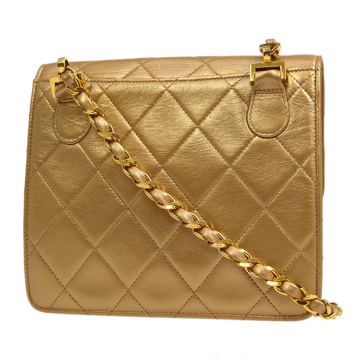 CHANEL 1991-1994 Gold Lambskin Straight Flap Mini