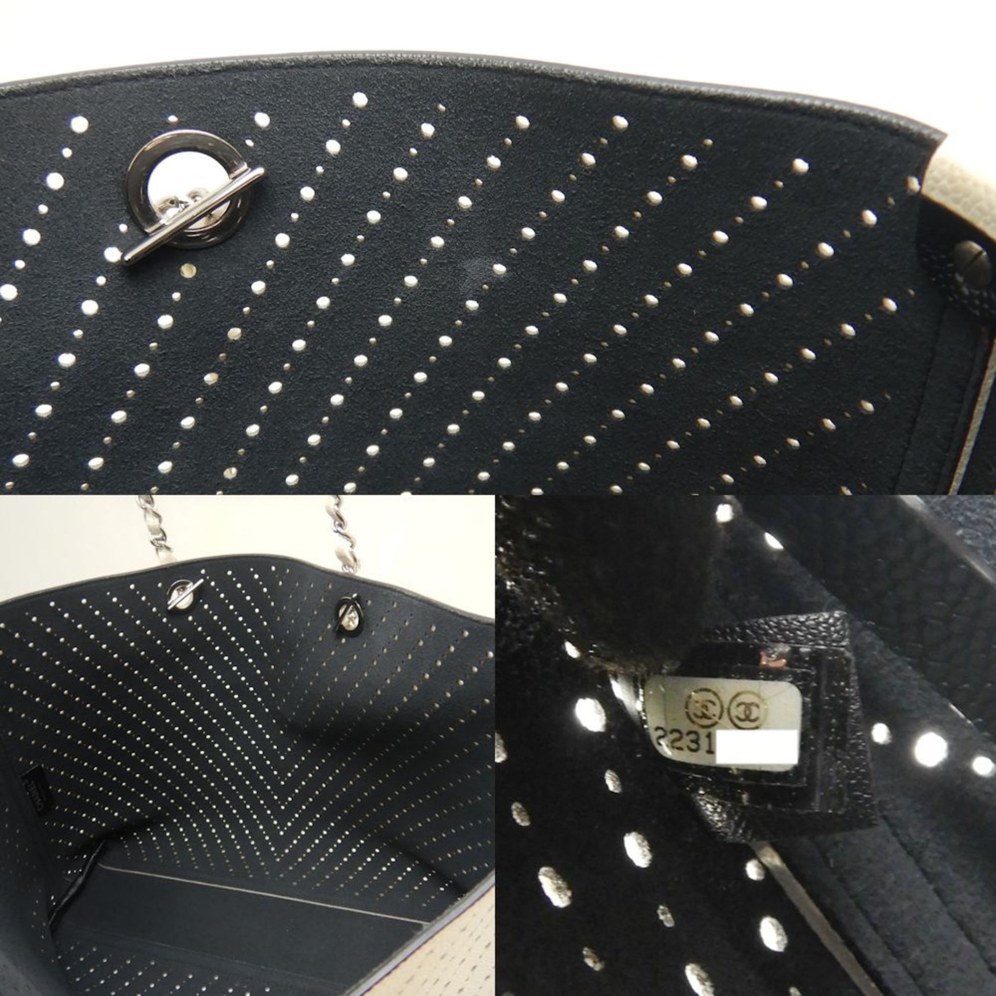 Chanel Sac Chain Tote en cuir caviar gris