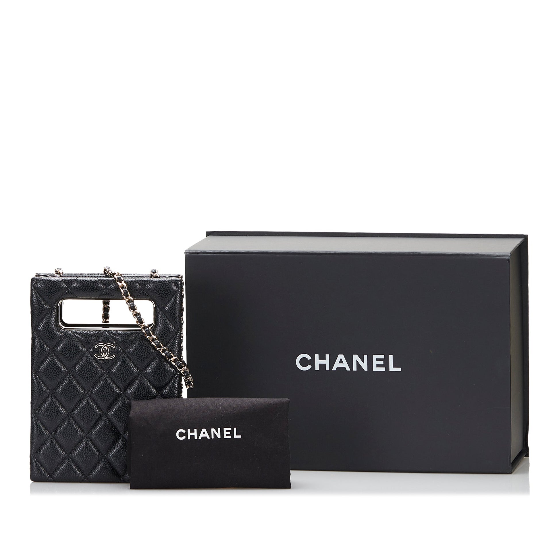 Chanel Sac Mini Caviar Chain Around Cut Out Evening Bag