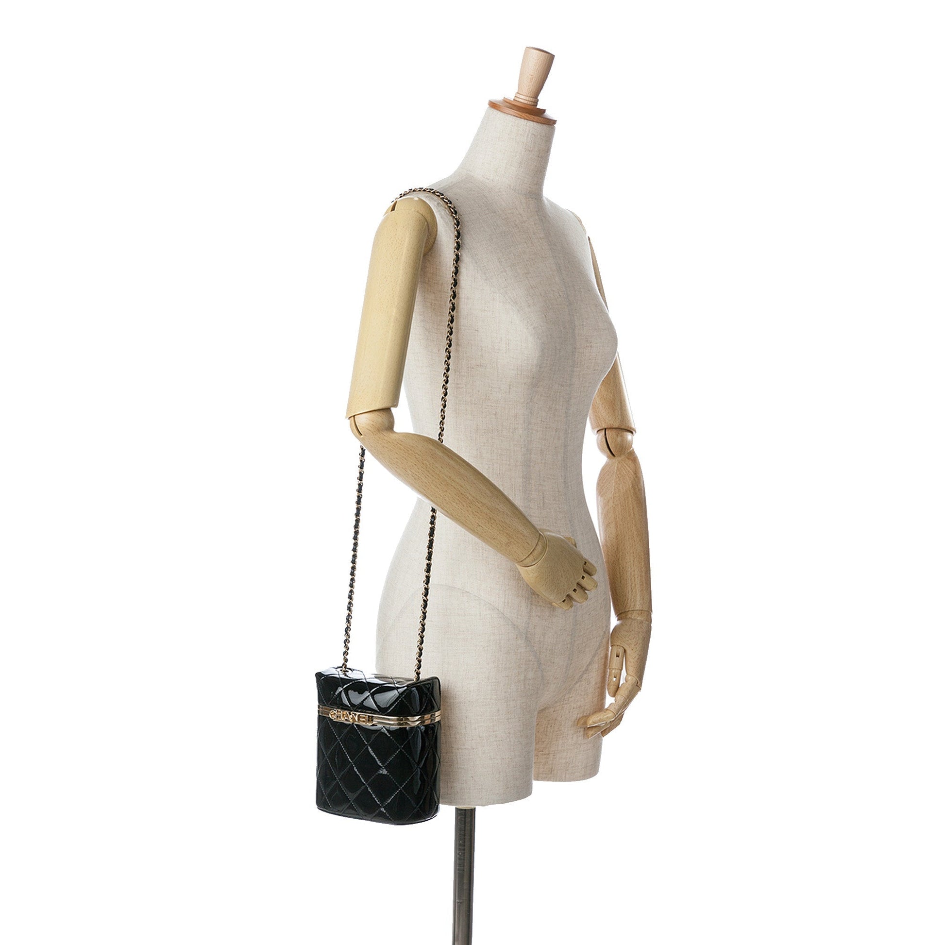 Chanel Sac Quilted Patent Logo Chain Vanity Case