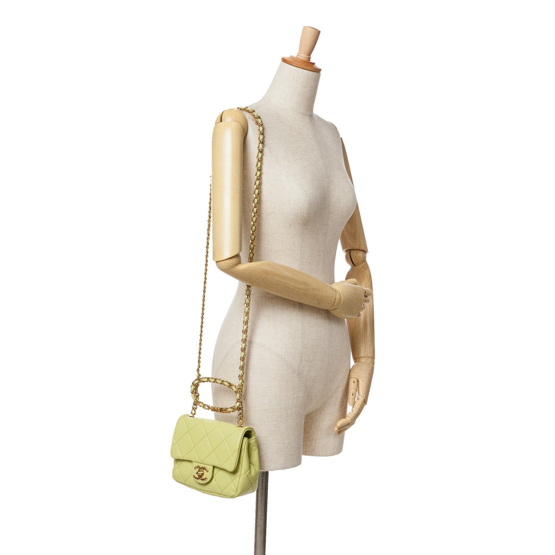 Chanel Sac Mini Quilted Lambskin Oval Logo Chain Top Handle Flap