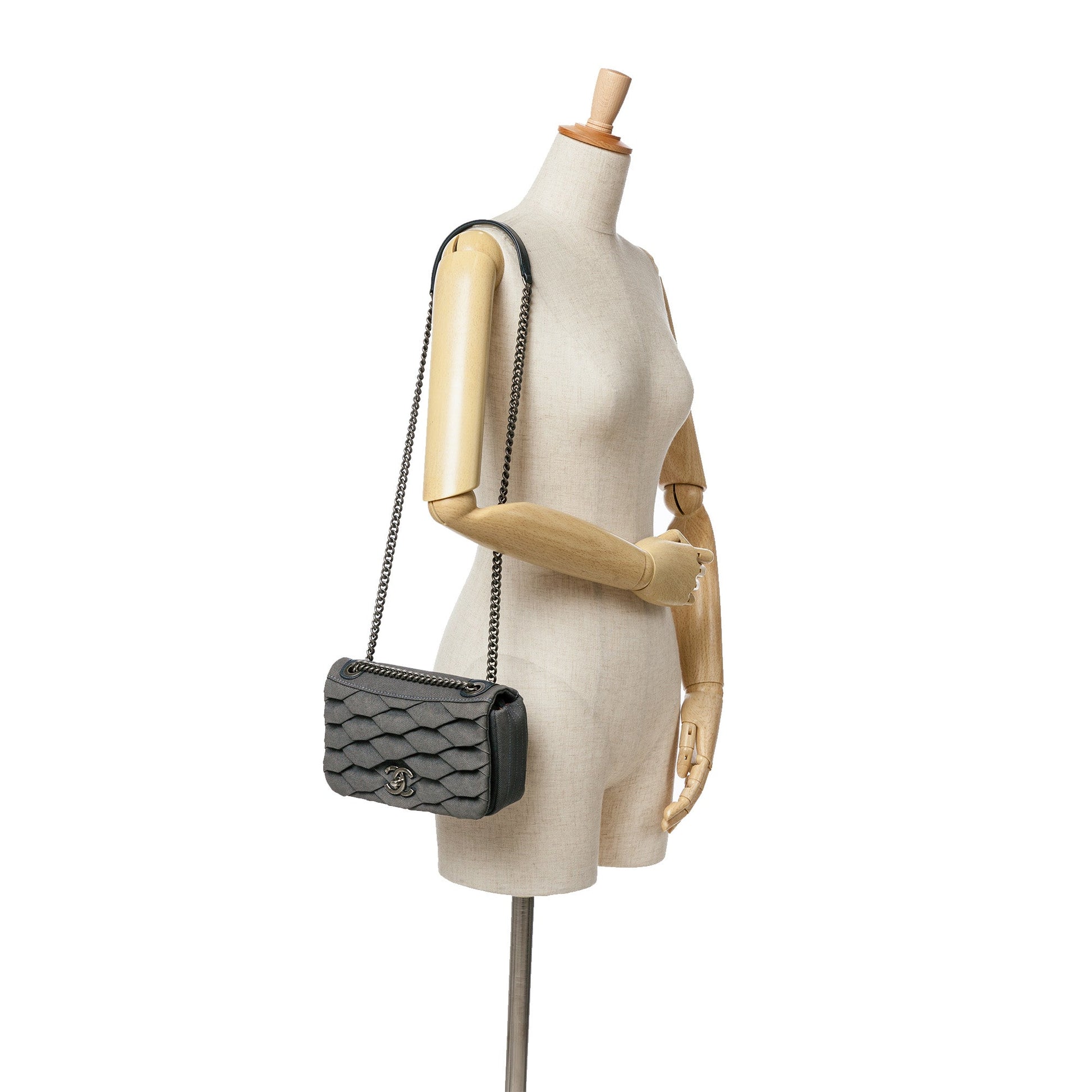 Chanel Sac Small Pleated Denim Scale Effect Turtle Flap
