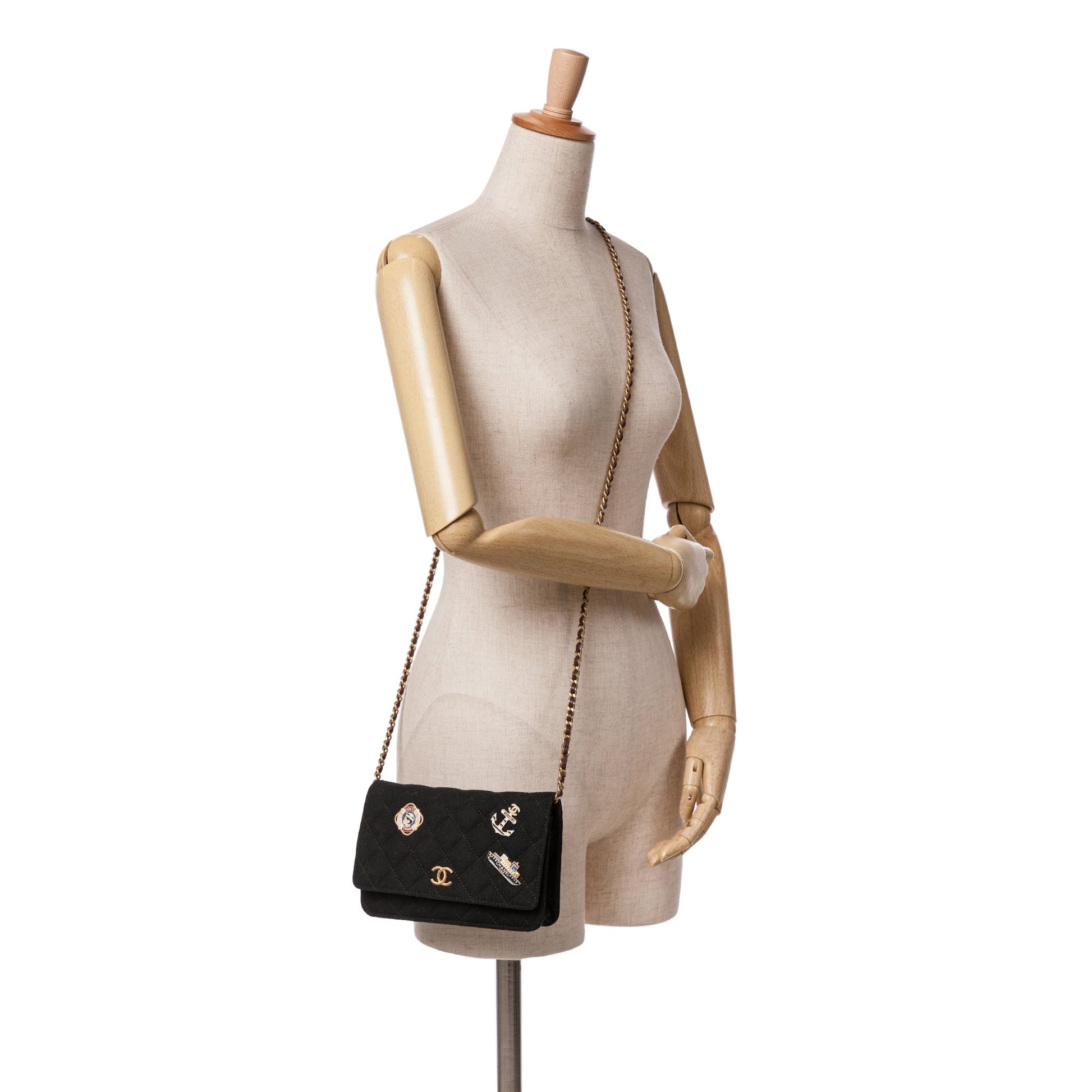 Chanel Sac Paris Hamburg Quilted Wool Charms Wallet On Chain