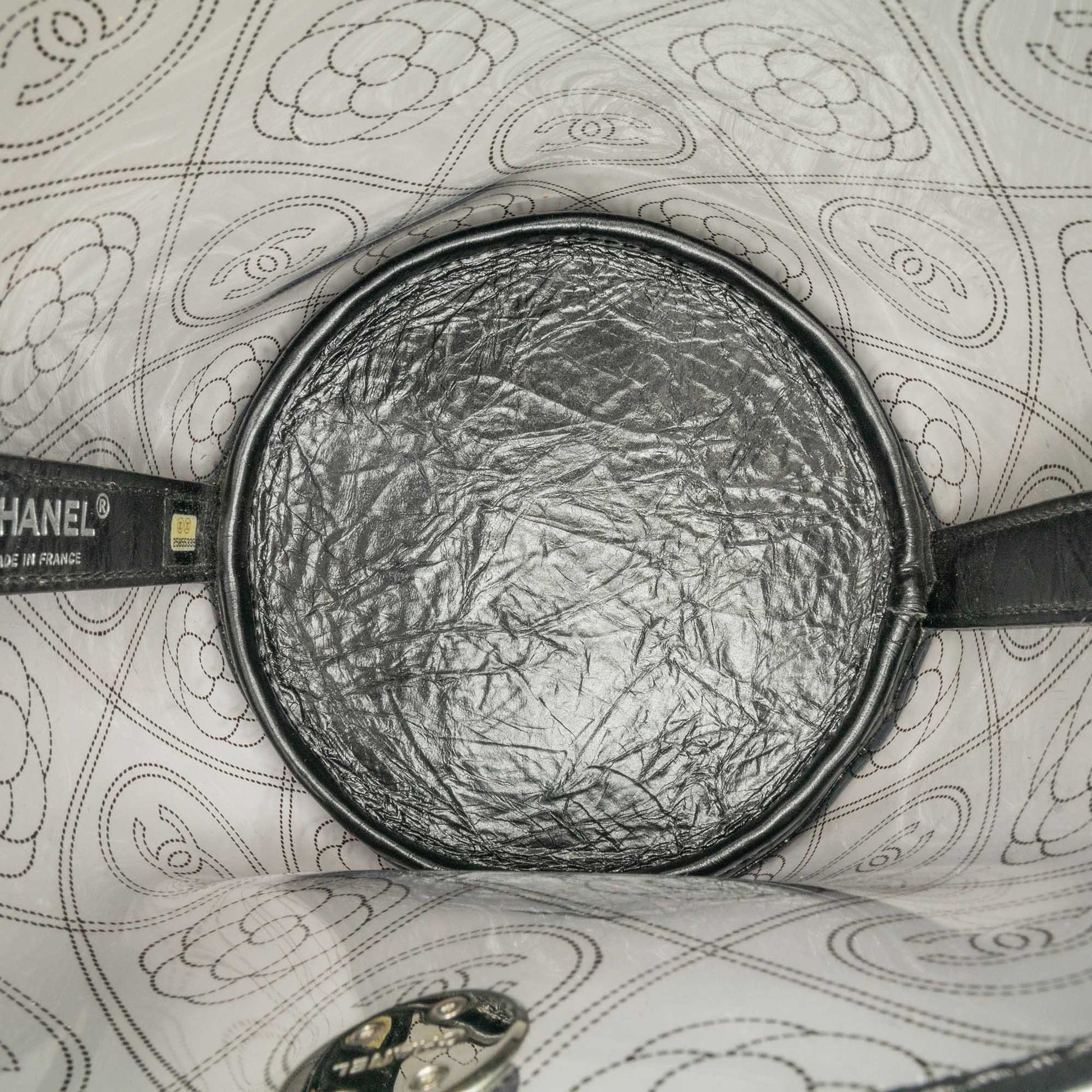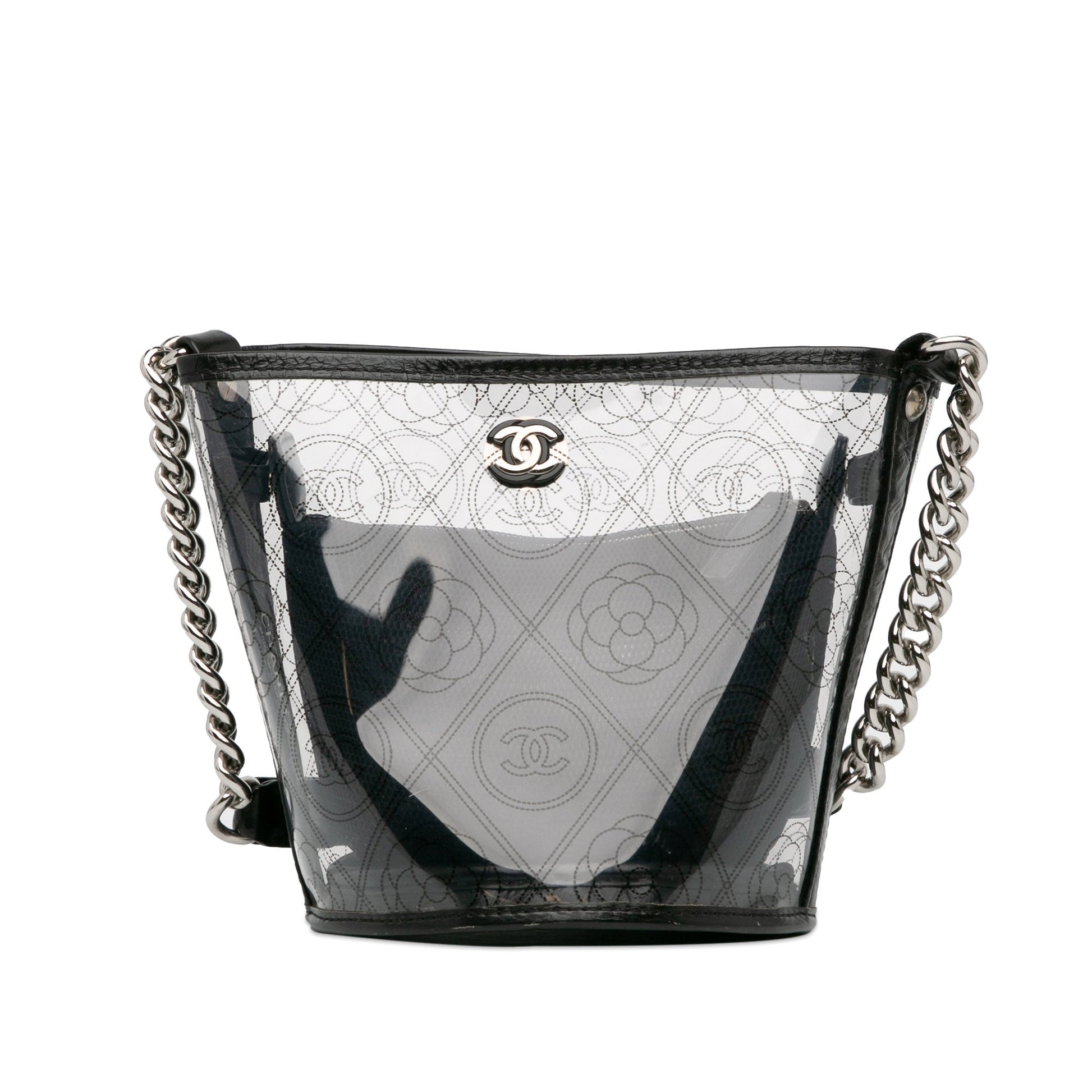 Chanel Sac Crumpled Calfskin PVC Camellia Bucket