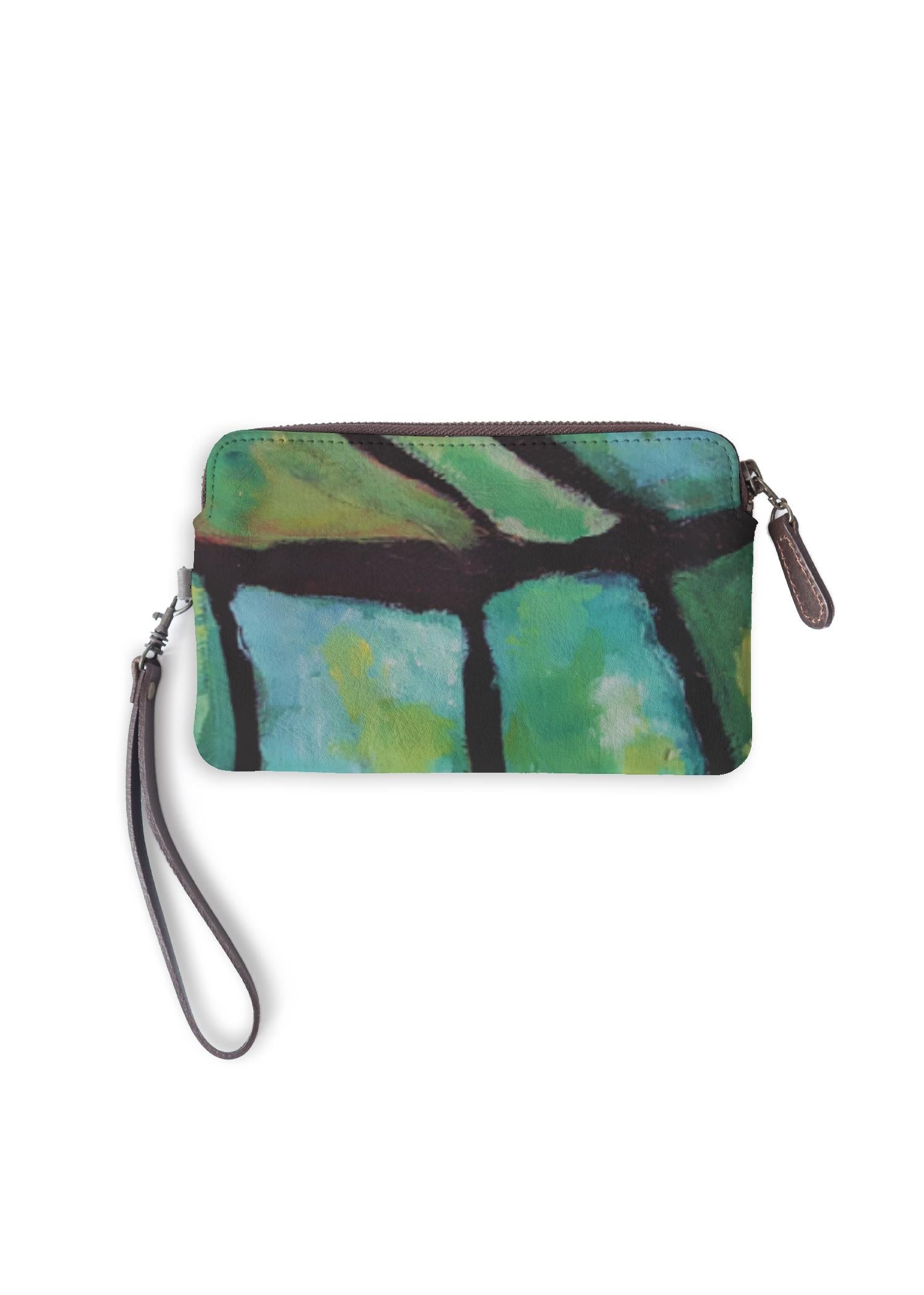 Whether carried as a clutch or dangled from the removable wristlet strap, this beautiful bag adds an elegant touch to any ensemble. Crafted from 100% genuine leather and premium metal accents and adorned with original artwork.