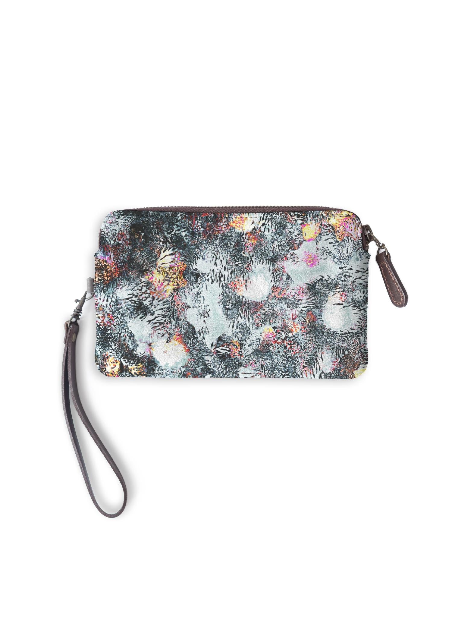 Accent your outfit with our chic custom printed Clutch featuring a premium metal top zip closure, and removable leather wristlet strap.