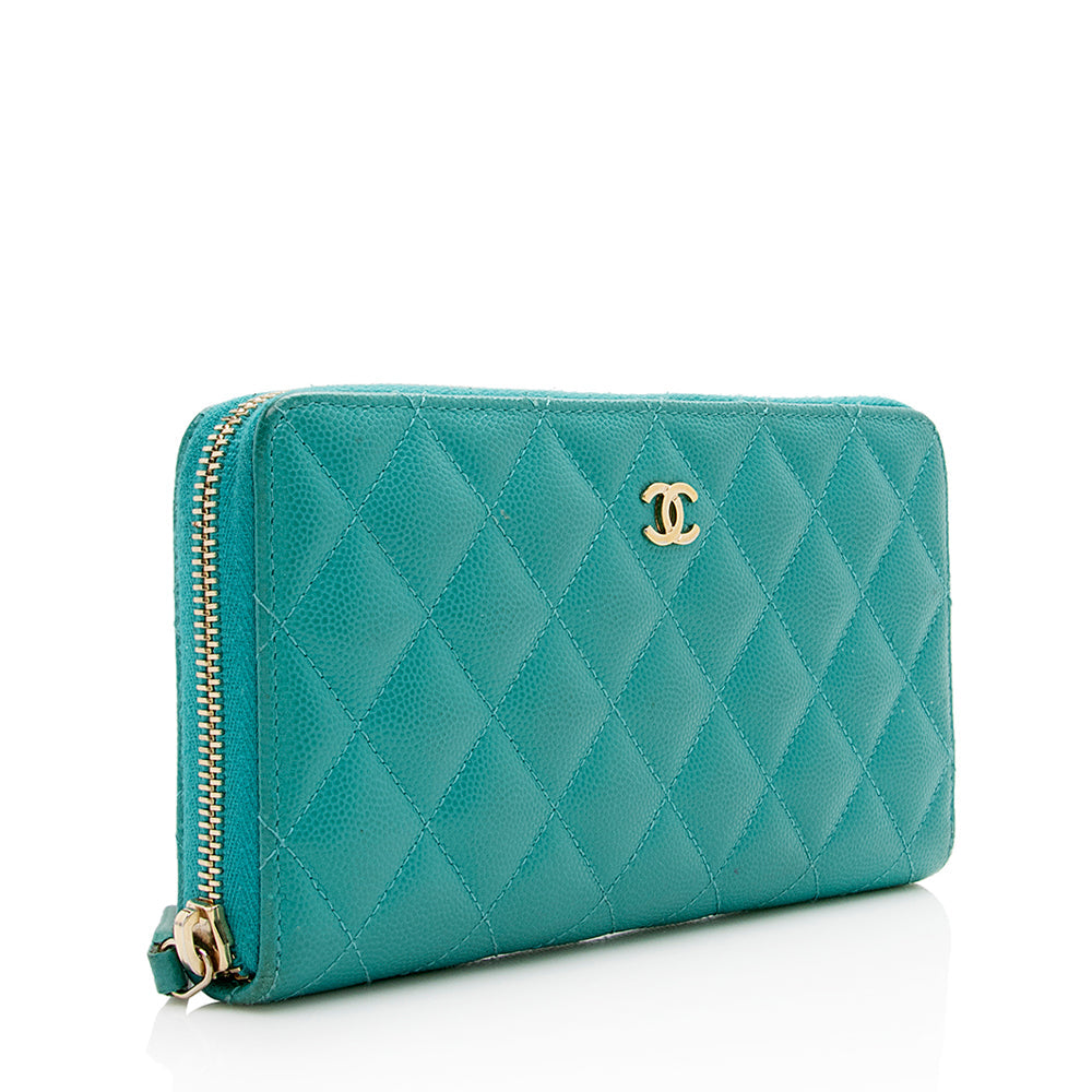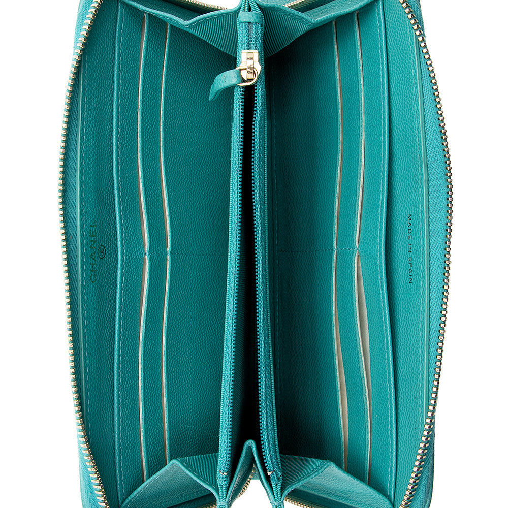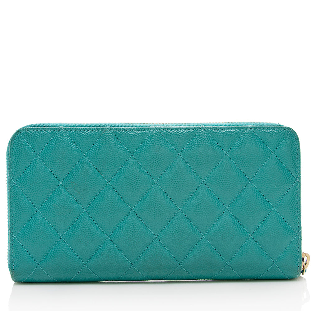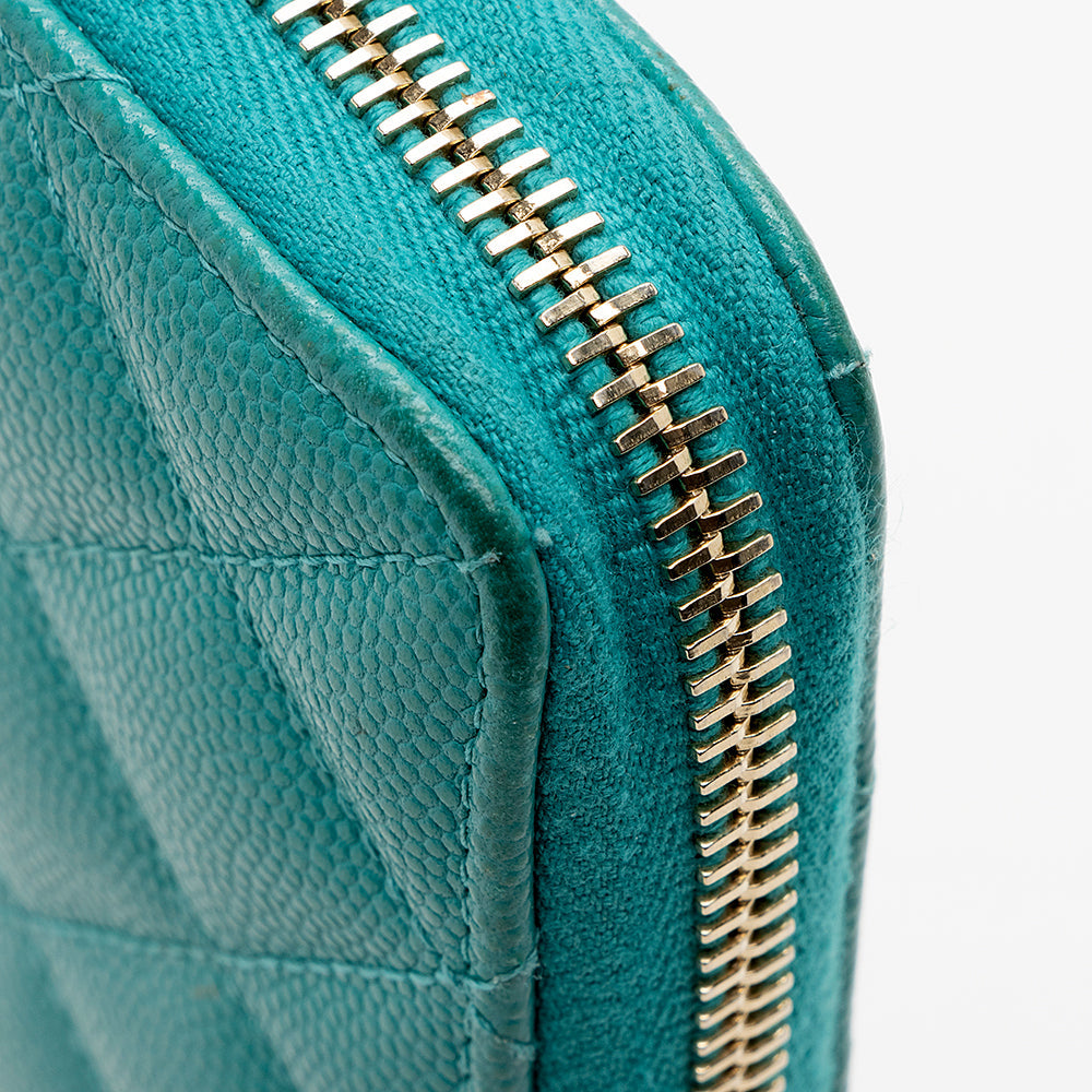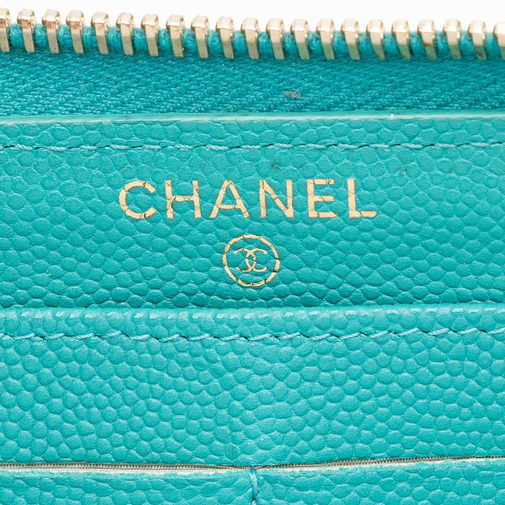 Chanel Caviar Leather CC Zip Around Wallet (SHF-16722)