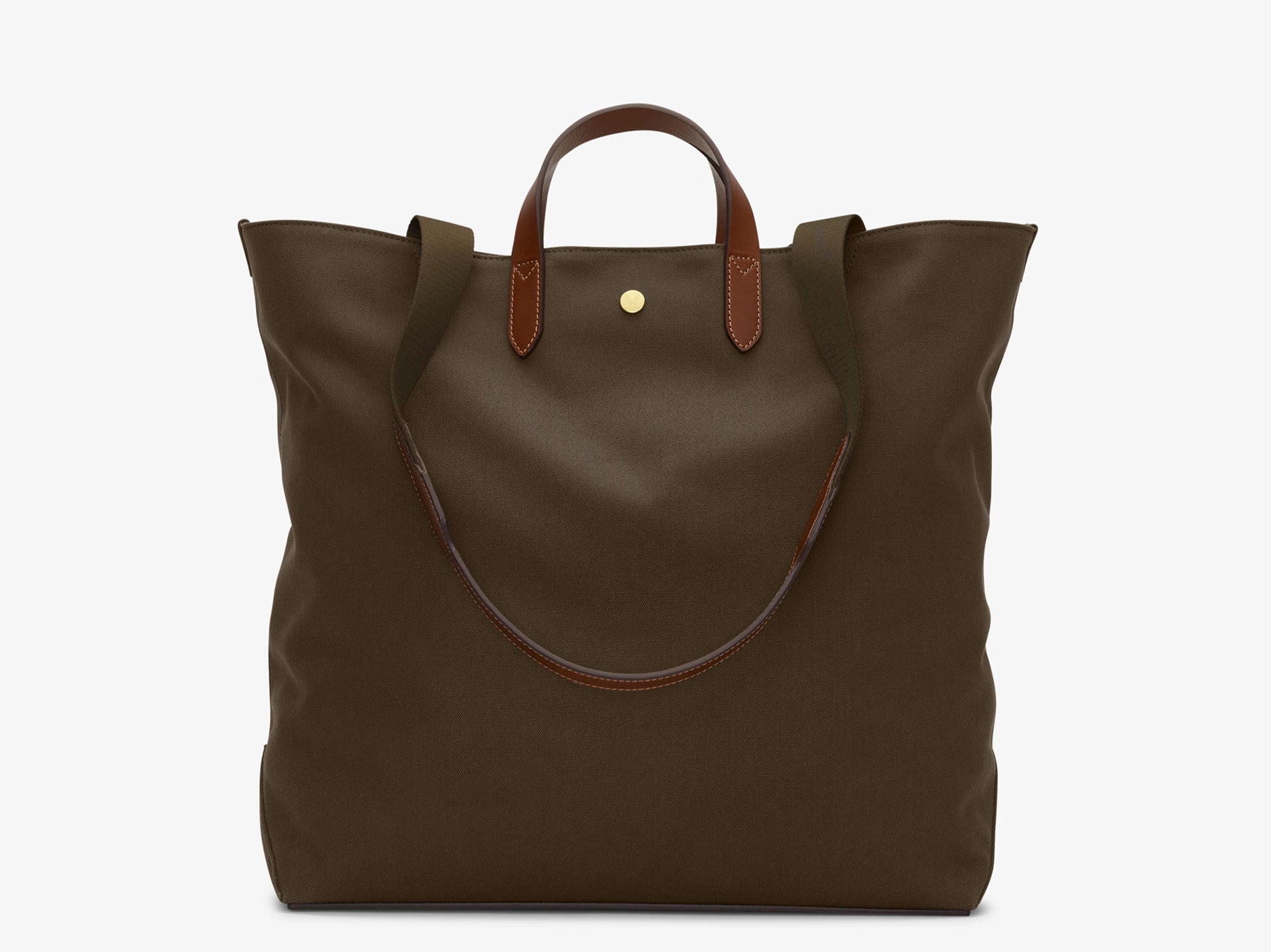 A spacious, unpretentious tote bag defined by its ultimate casual practicality that will easily adapt to most peoples everyday life. Features an inside pocket with snap button on the one side and a zipped pocket on the opposite side. Both pockets crafted in the outside main fabric with additional two large slide-down pockets in lining placed behind the zipped pocket. A snap hook placed in-between the handles is used for closure.