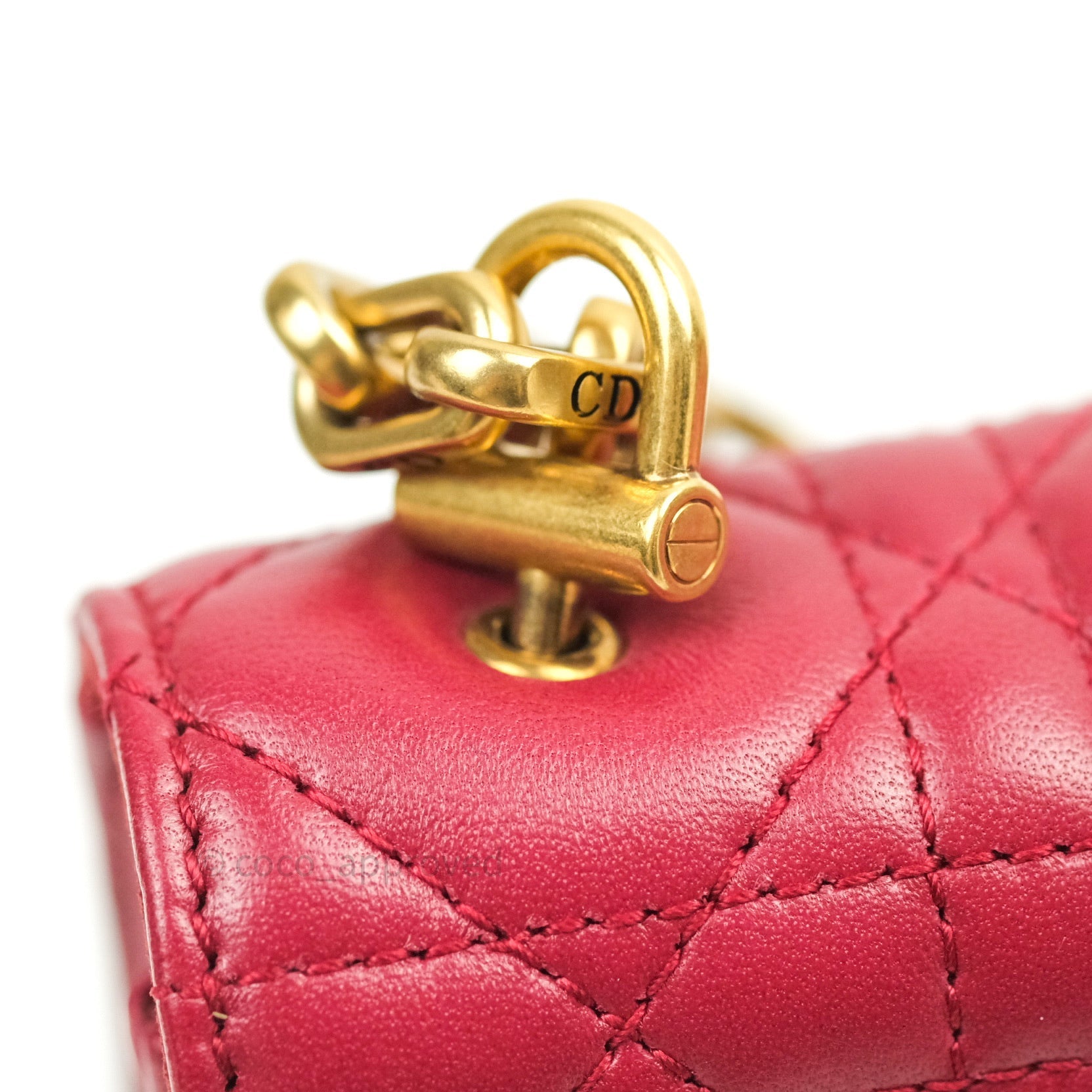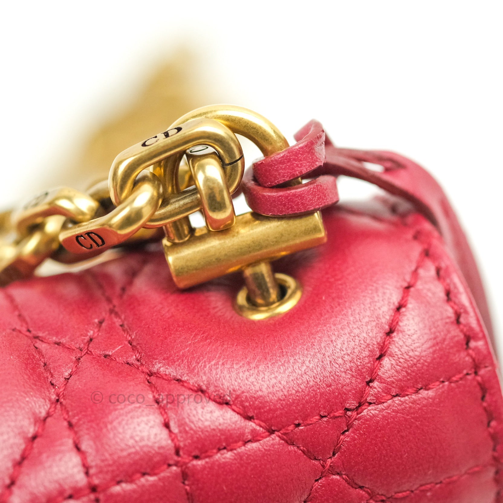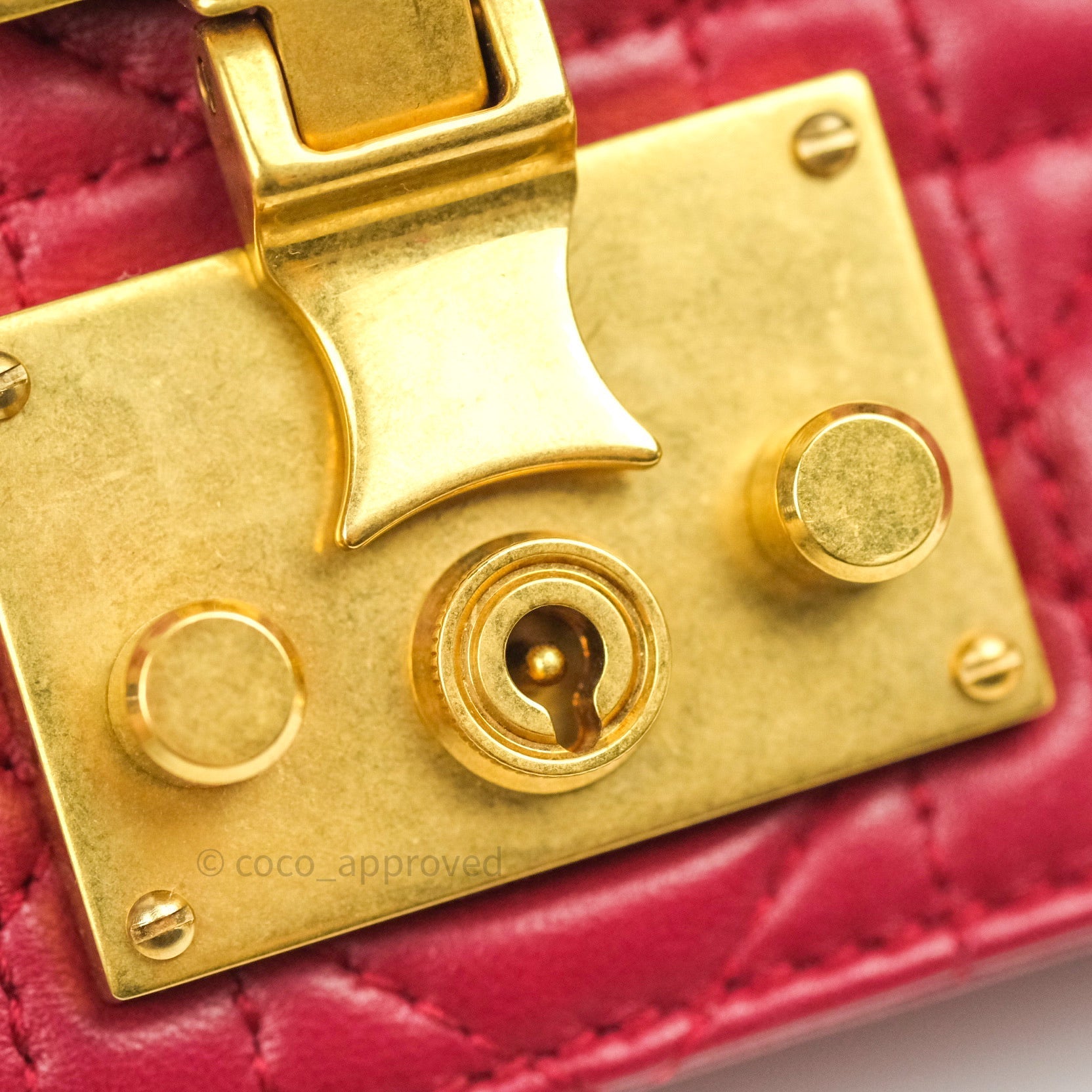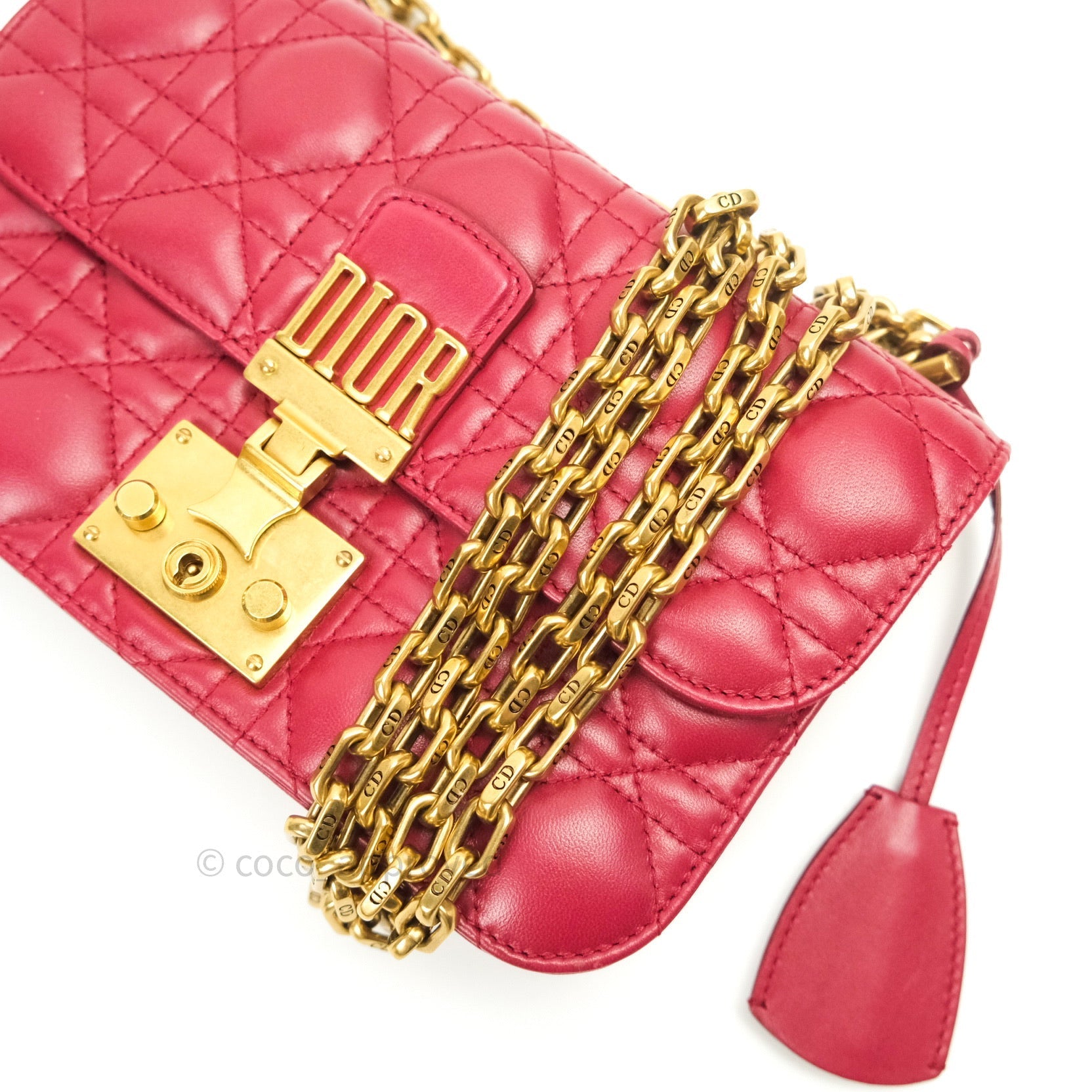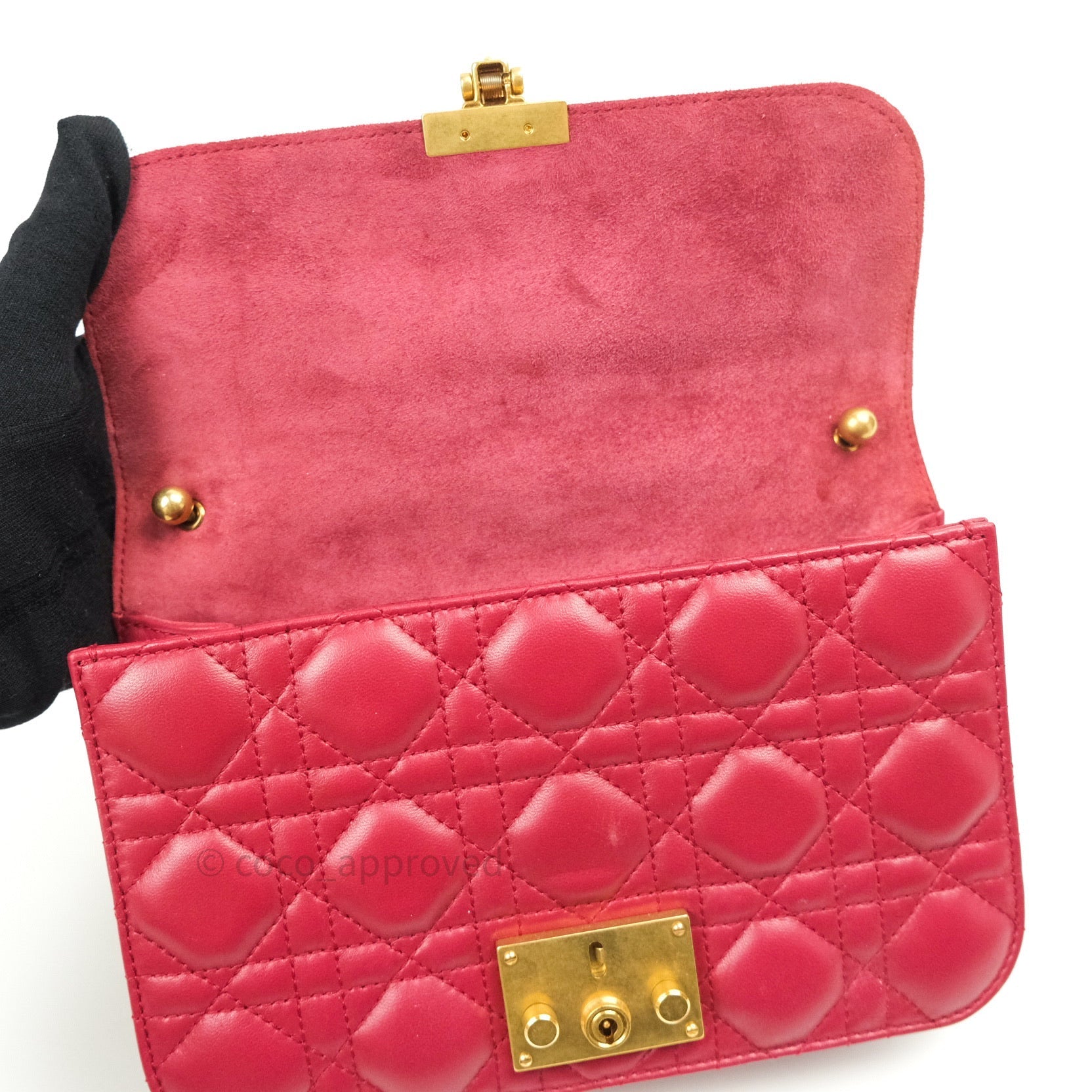 Christian Dior Lambskin Cannage Small Dioraddict Flap Bag Red Gold Hardware