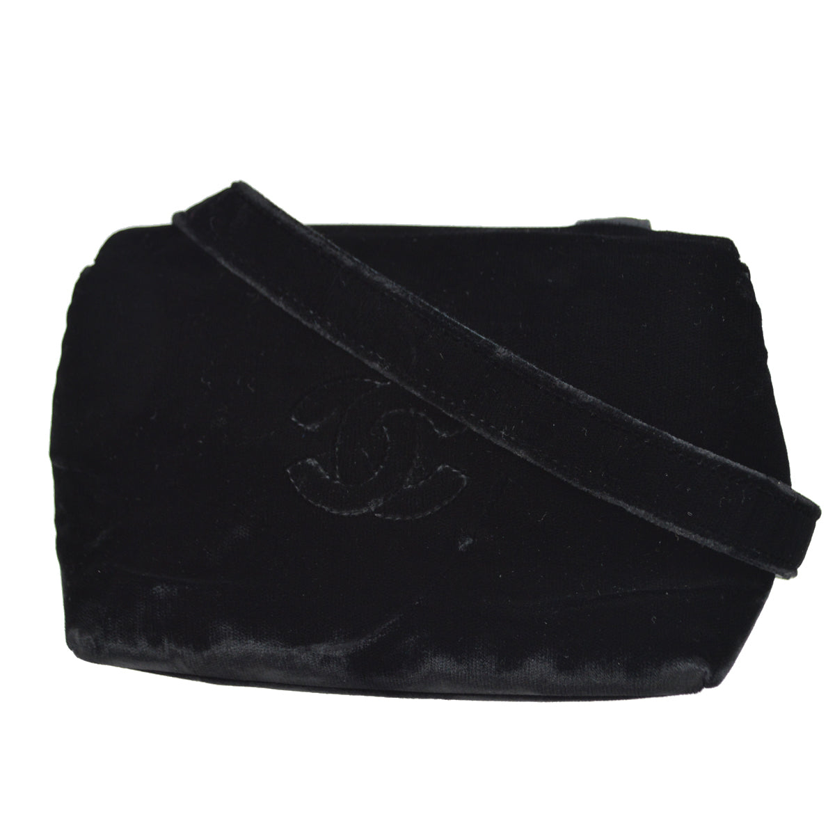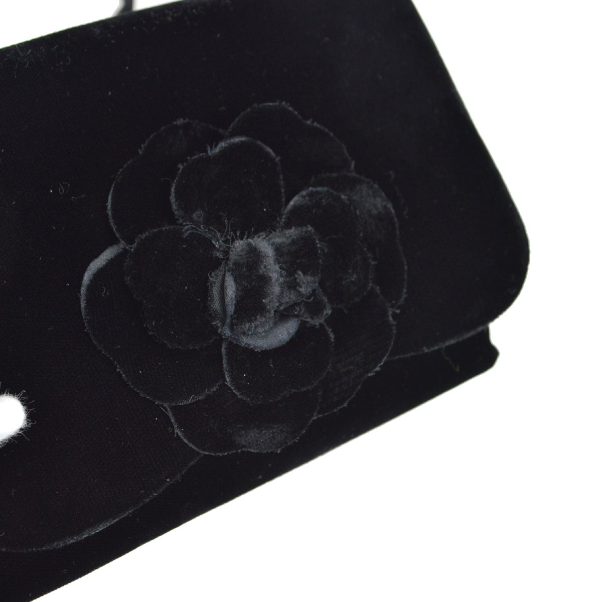 CHANEL 1991-1994 Camellia Crossbody Bag Black Velvet