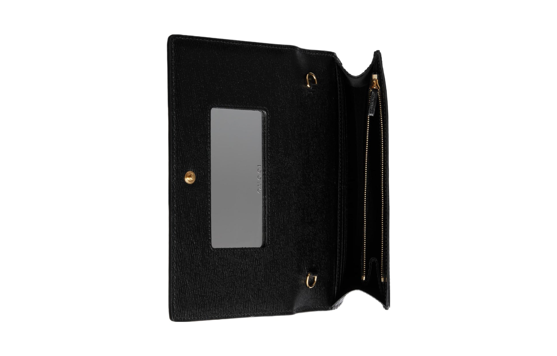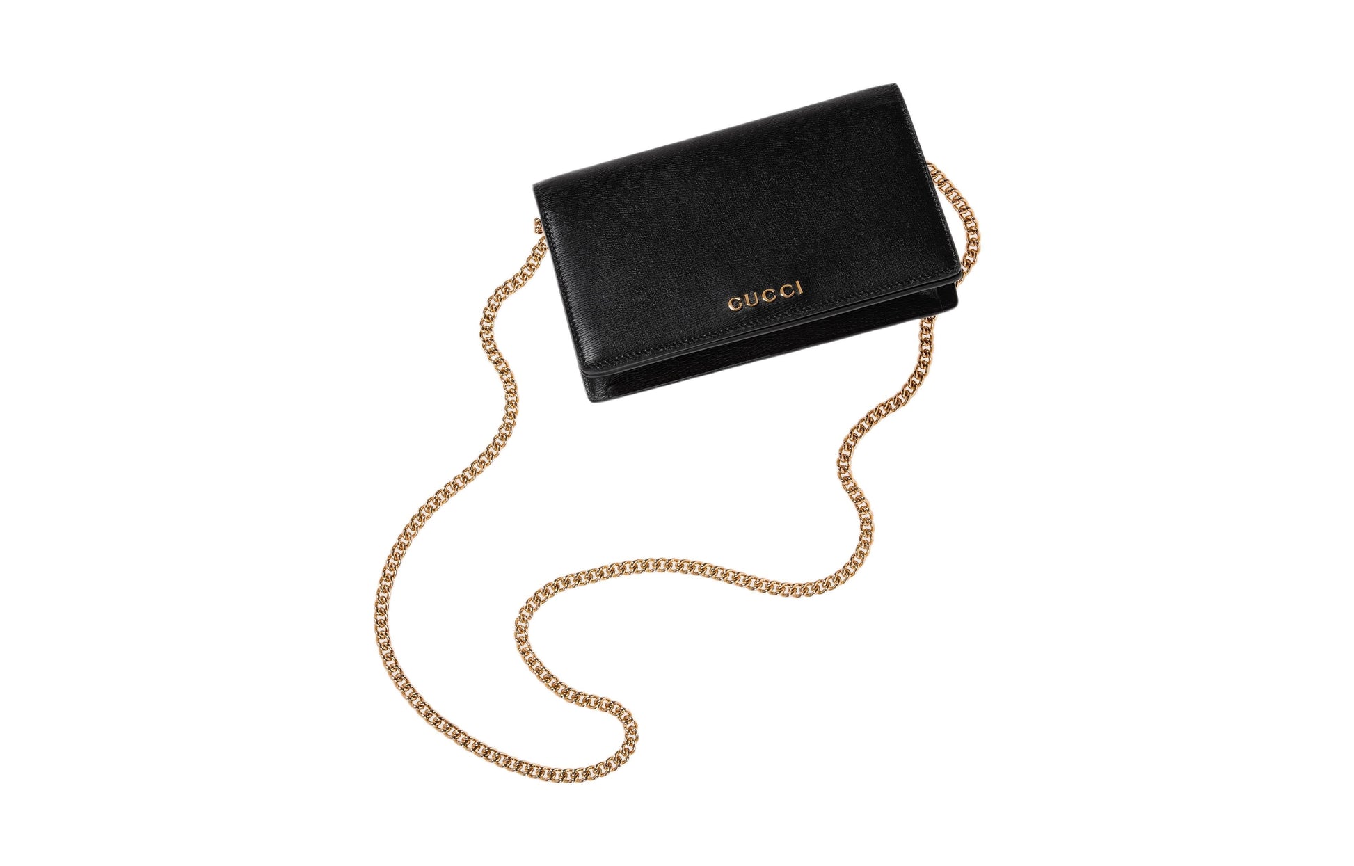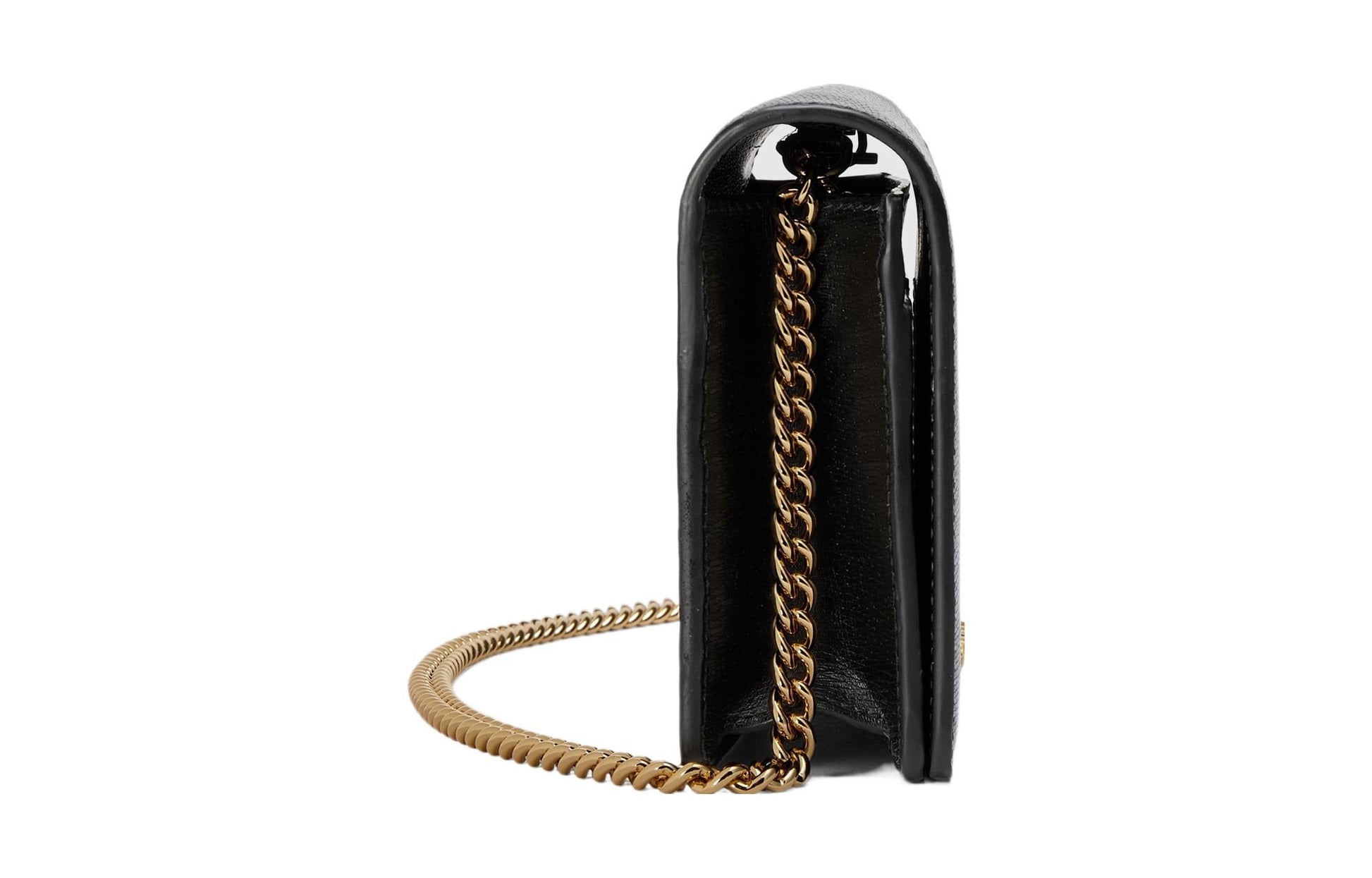 (WMNS) Gucci Chain Wallet With Gucci Script 'Black Leather' 772643-0OP0N-1000