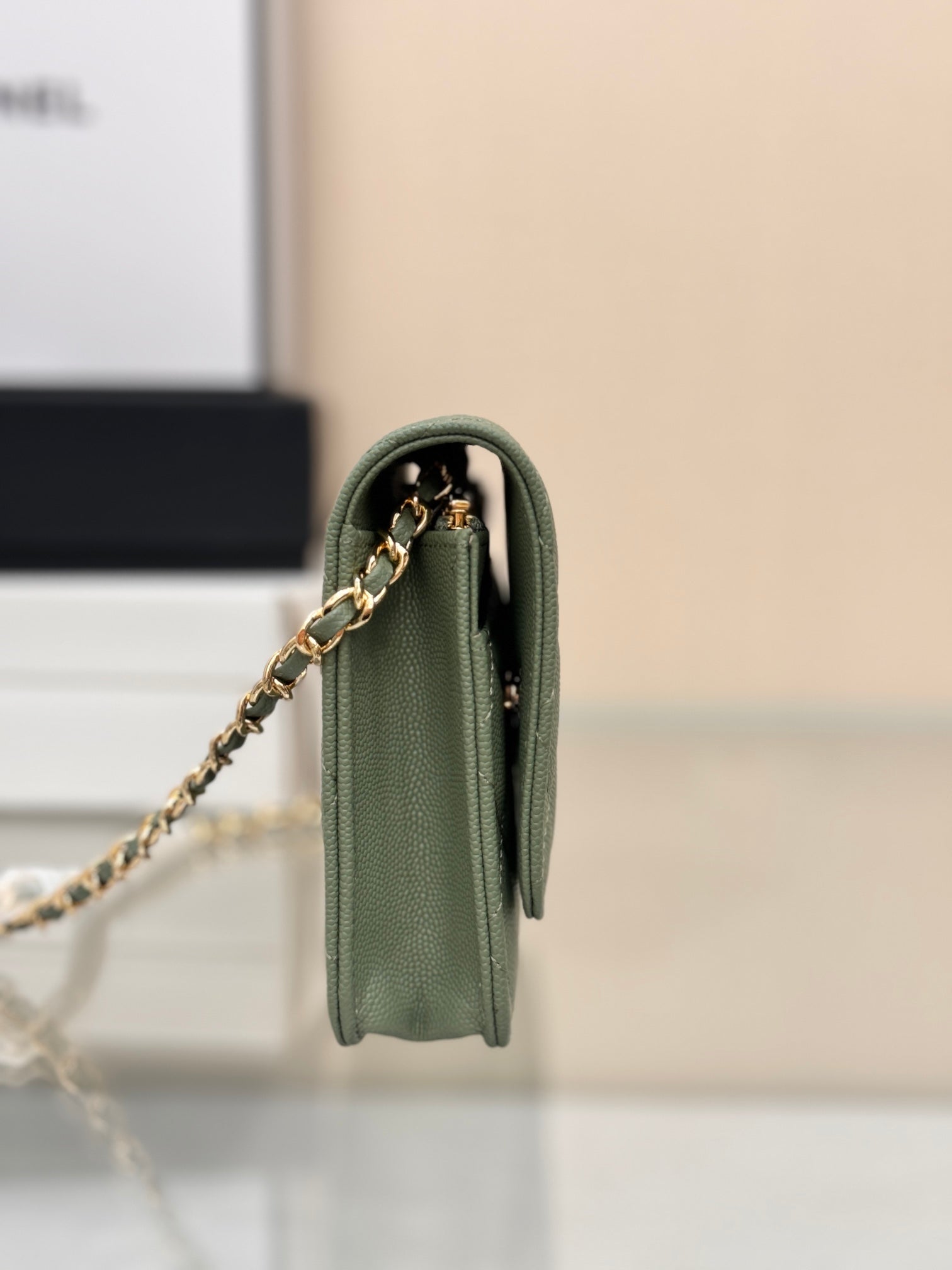 CHANEL WOC 19CM KHAKI BLUE CAVIAR GOLD HARDWARE