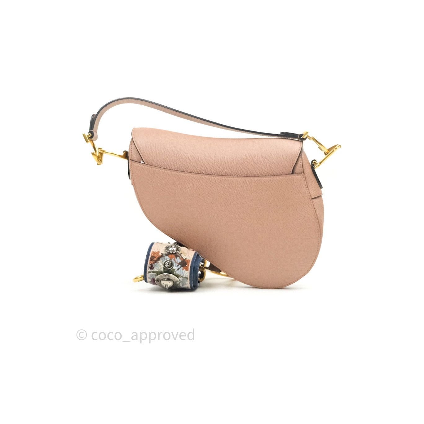 Dior Saddle Medium Beige Grained Calfskin Gold Hardware with Dior Strap