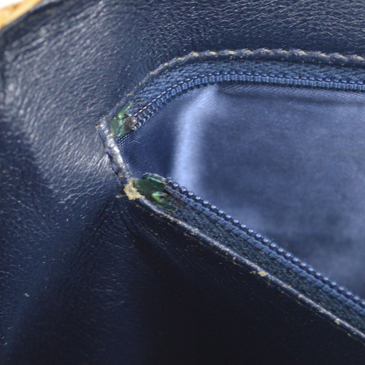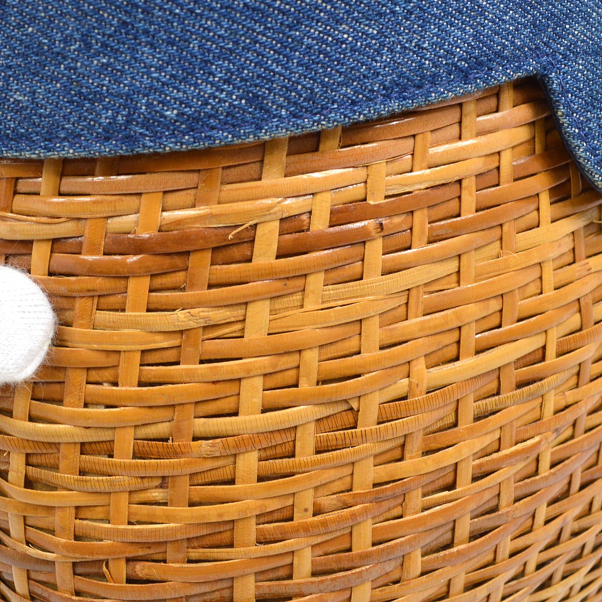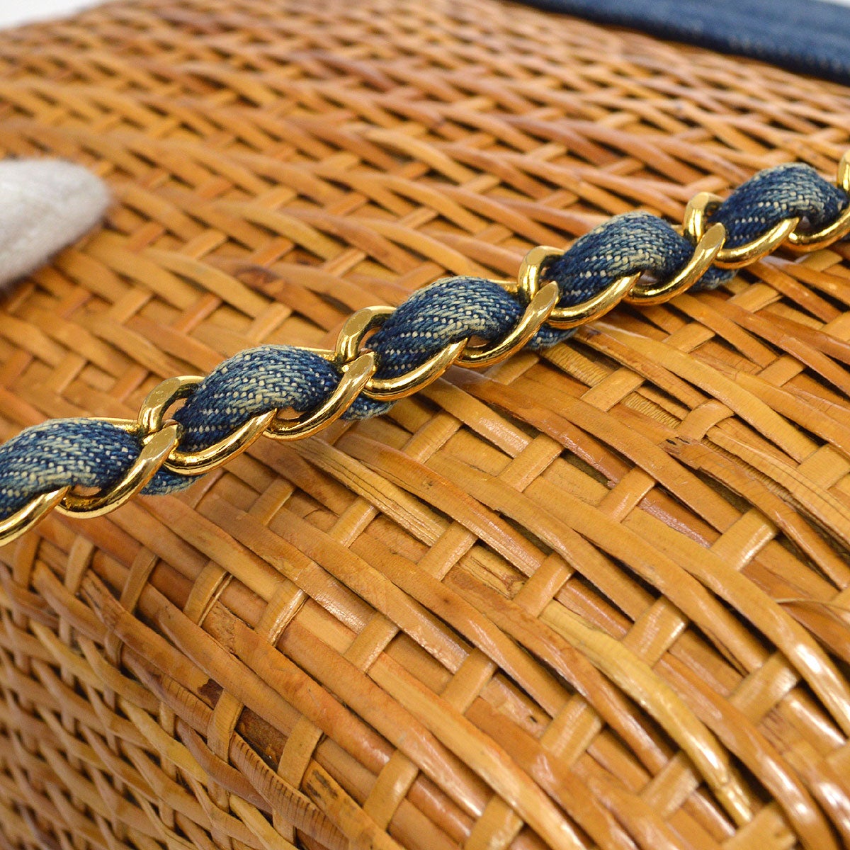 CHANEL 1997-1999 Basket Chain Shoulder Bag Indigo Denim Rattan